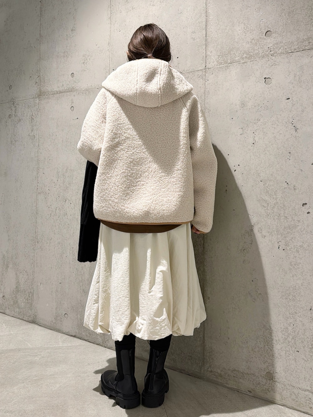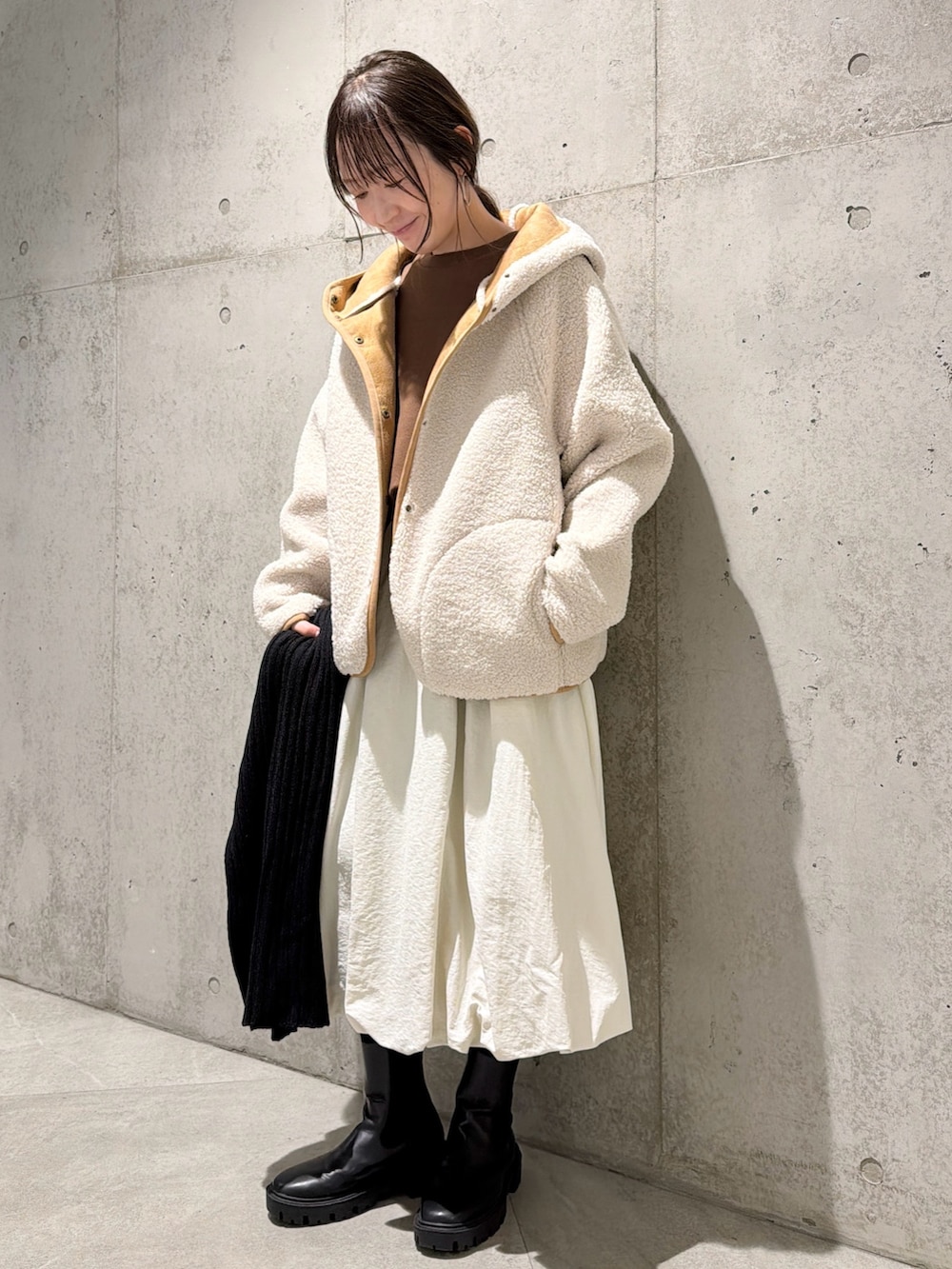 ムートンボア素材で防寒性も高く、軽く羽織れるのでデイリー使いにぴったり。