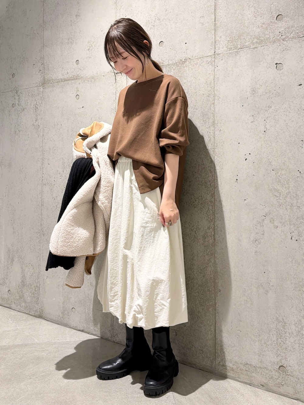 スカートはバルーンシルエットがふんわりと着映えするアイテム。