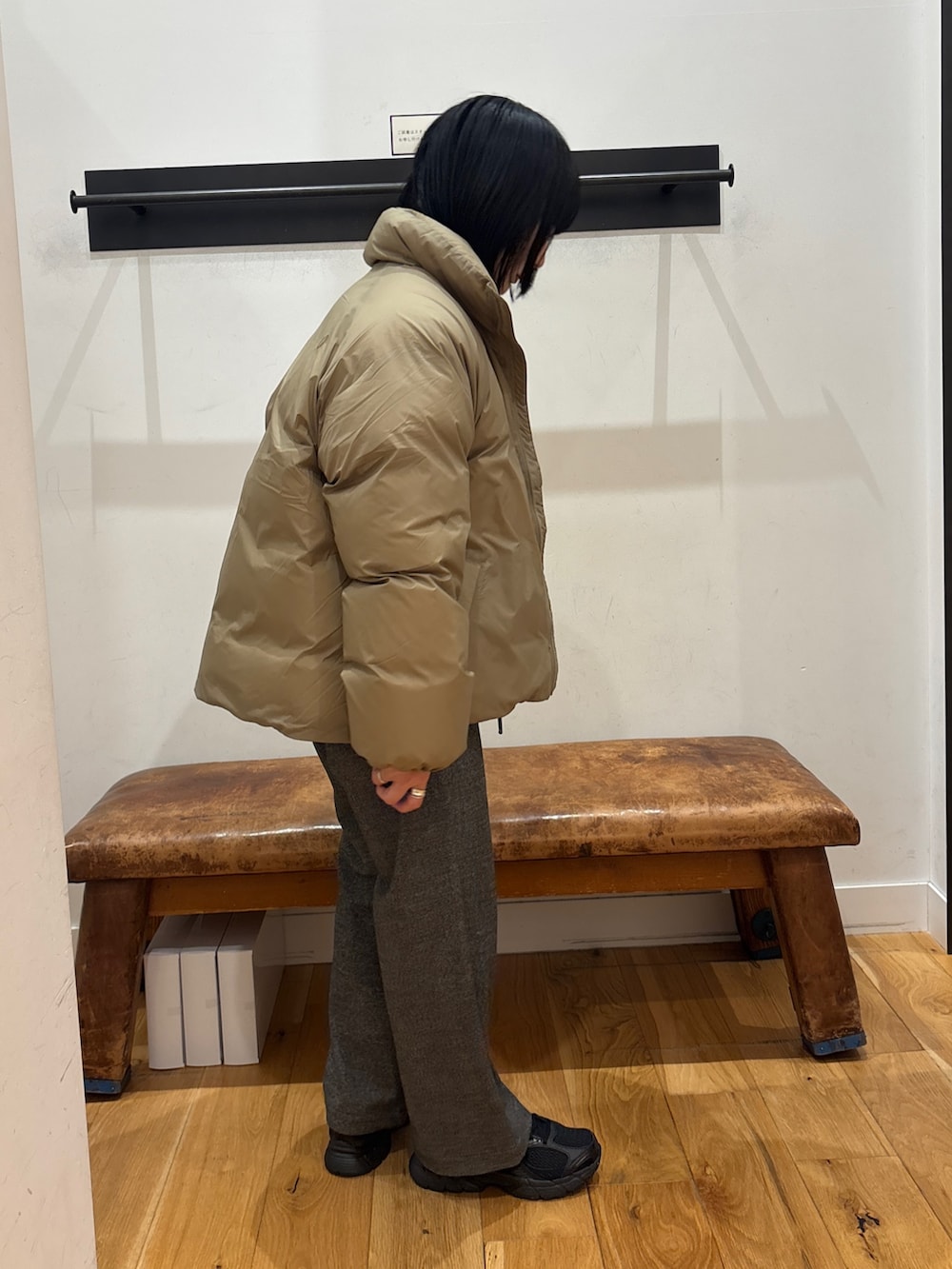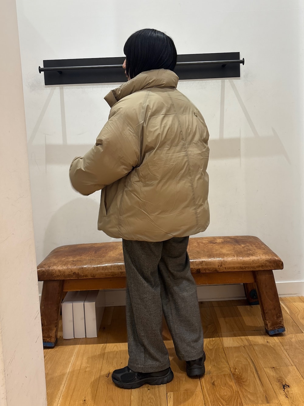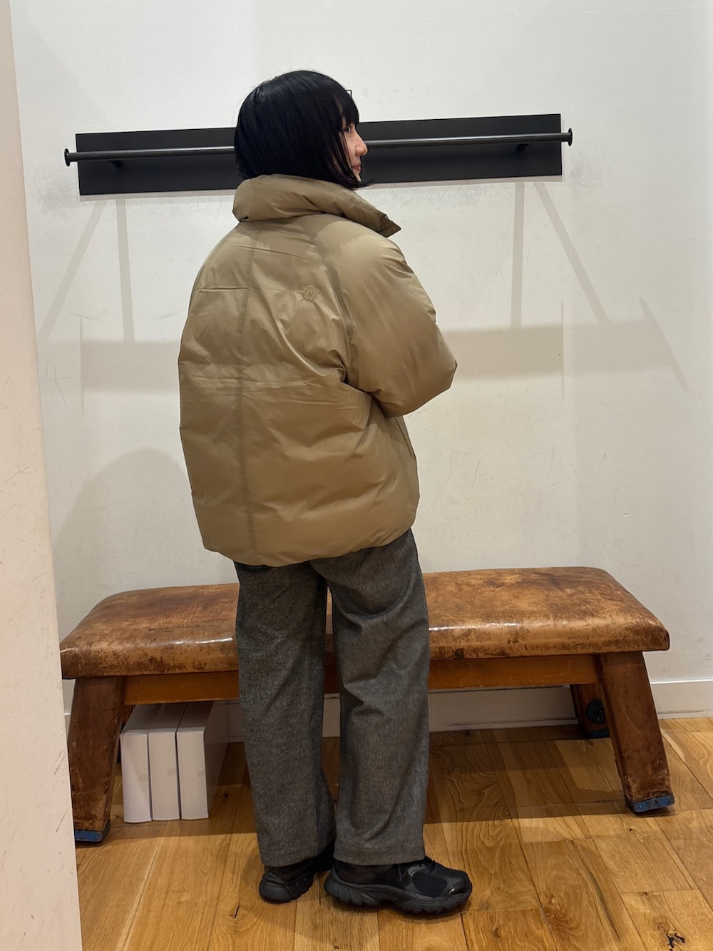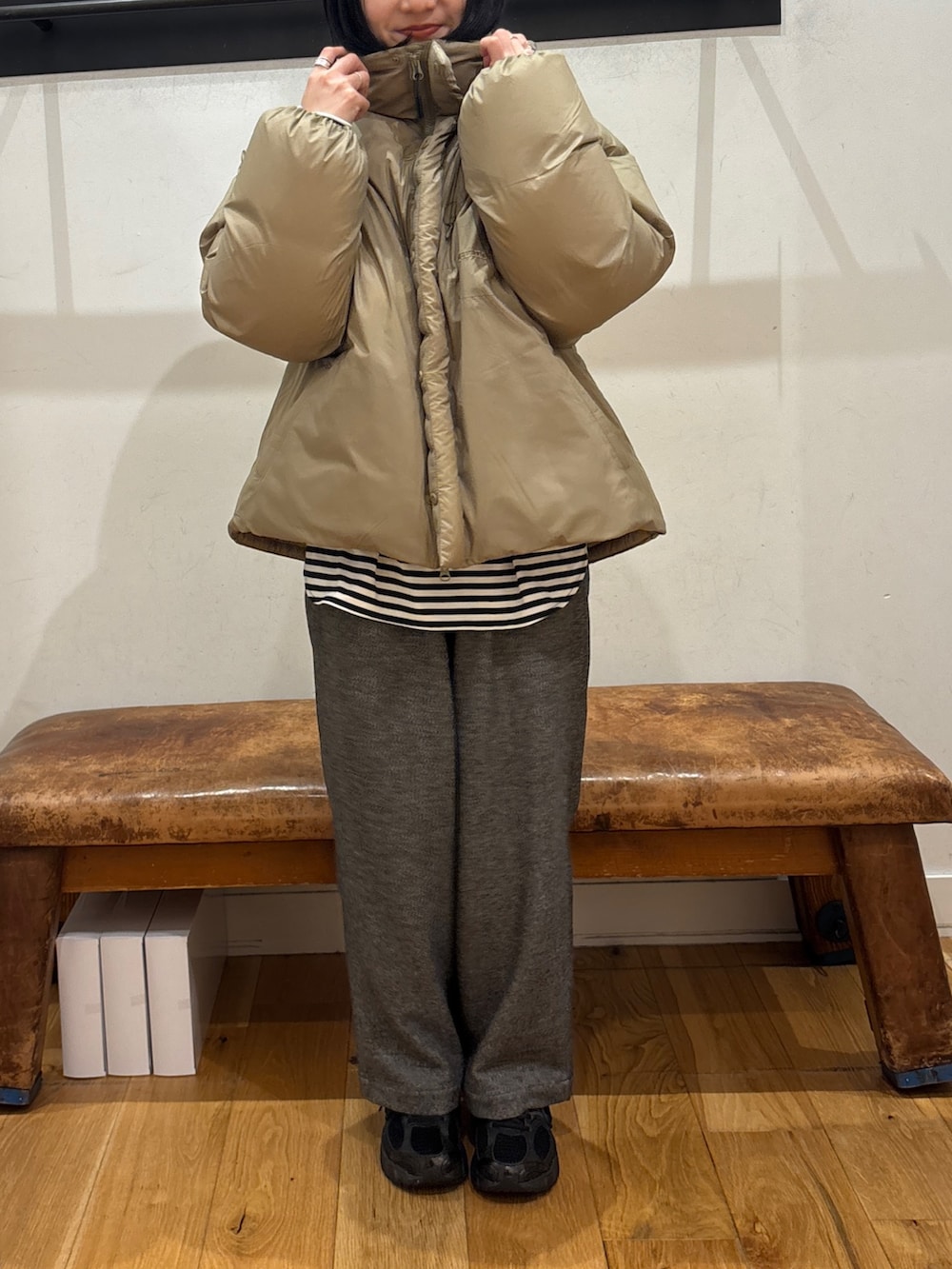 フードのないデザインがスッキリ色々合わせやすく