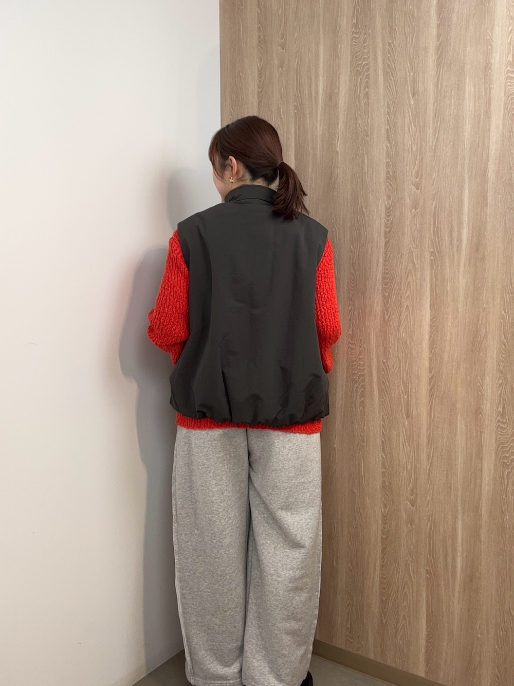 カラーニットをアクセントに、思いっきりカジュアル合わせも◎