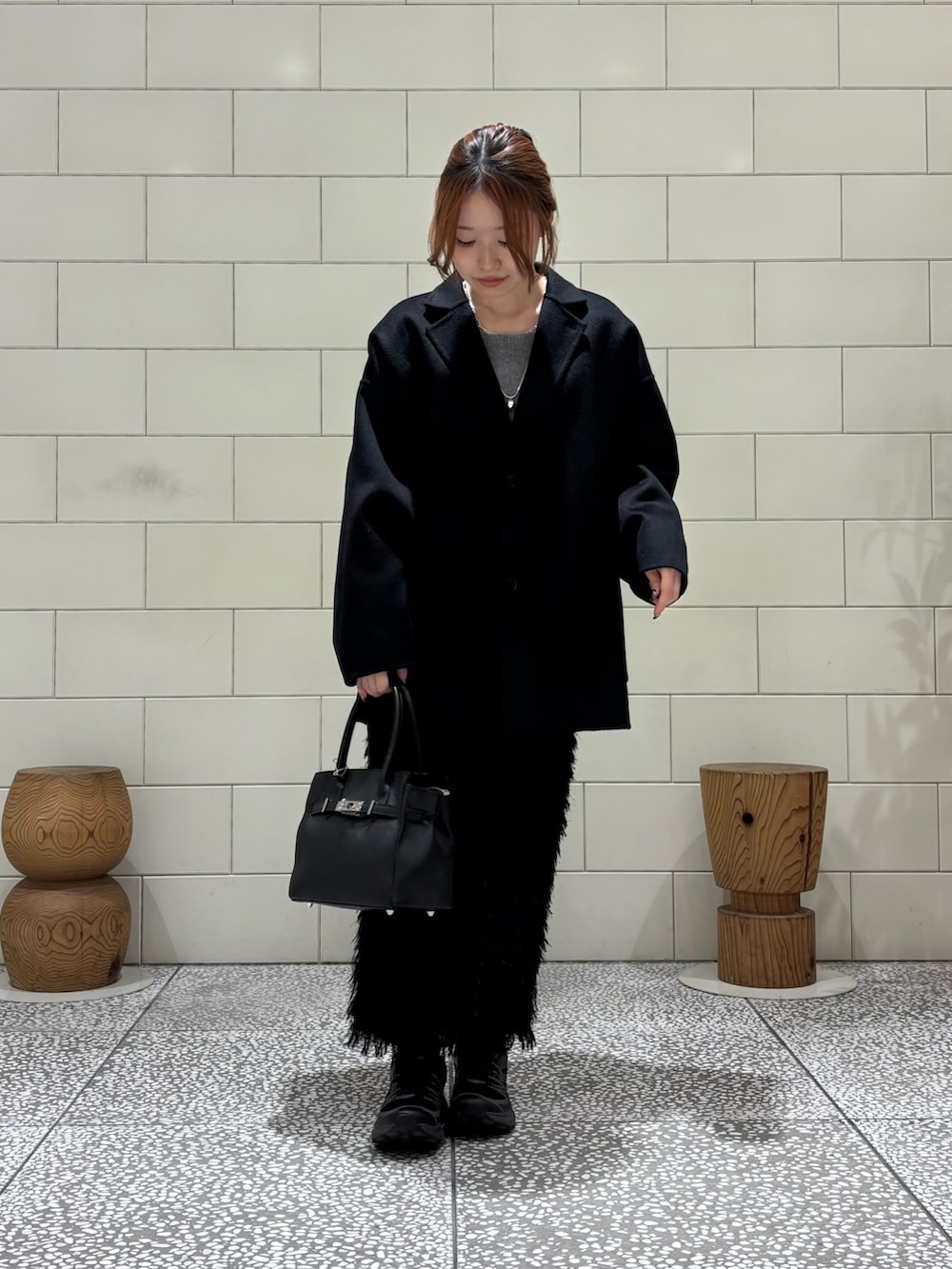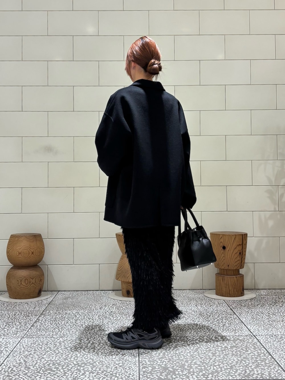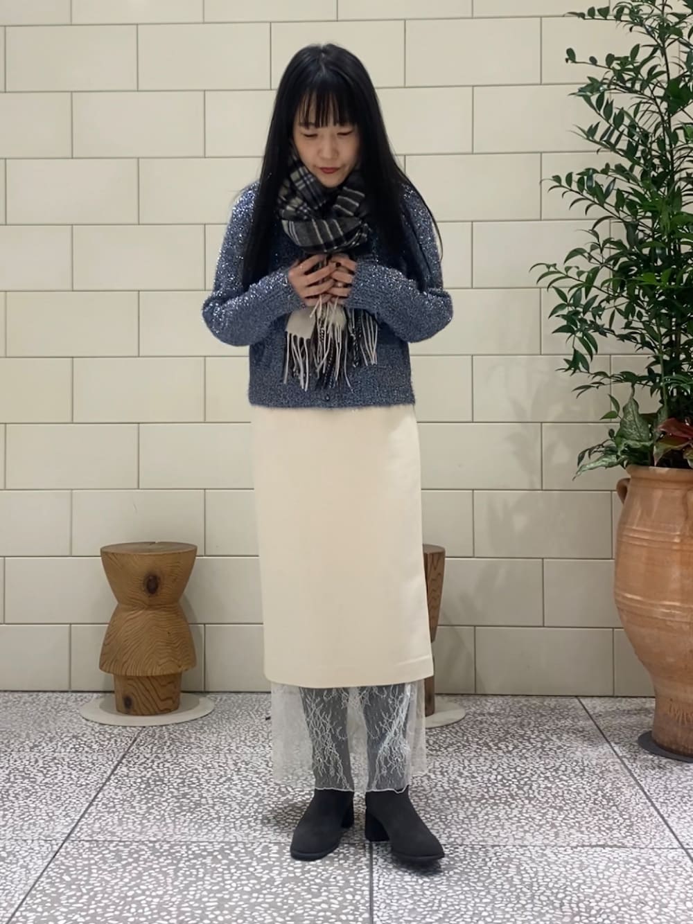 存在感のあるフリンジスカートです。スッキリとしたシルエットでニットとの相性◎深めに入ったスリットもポイントです。