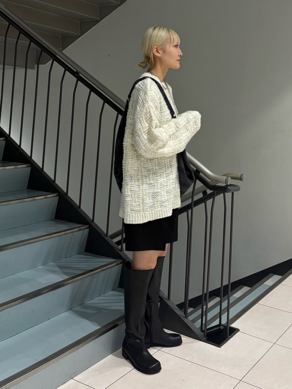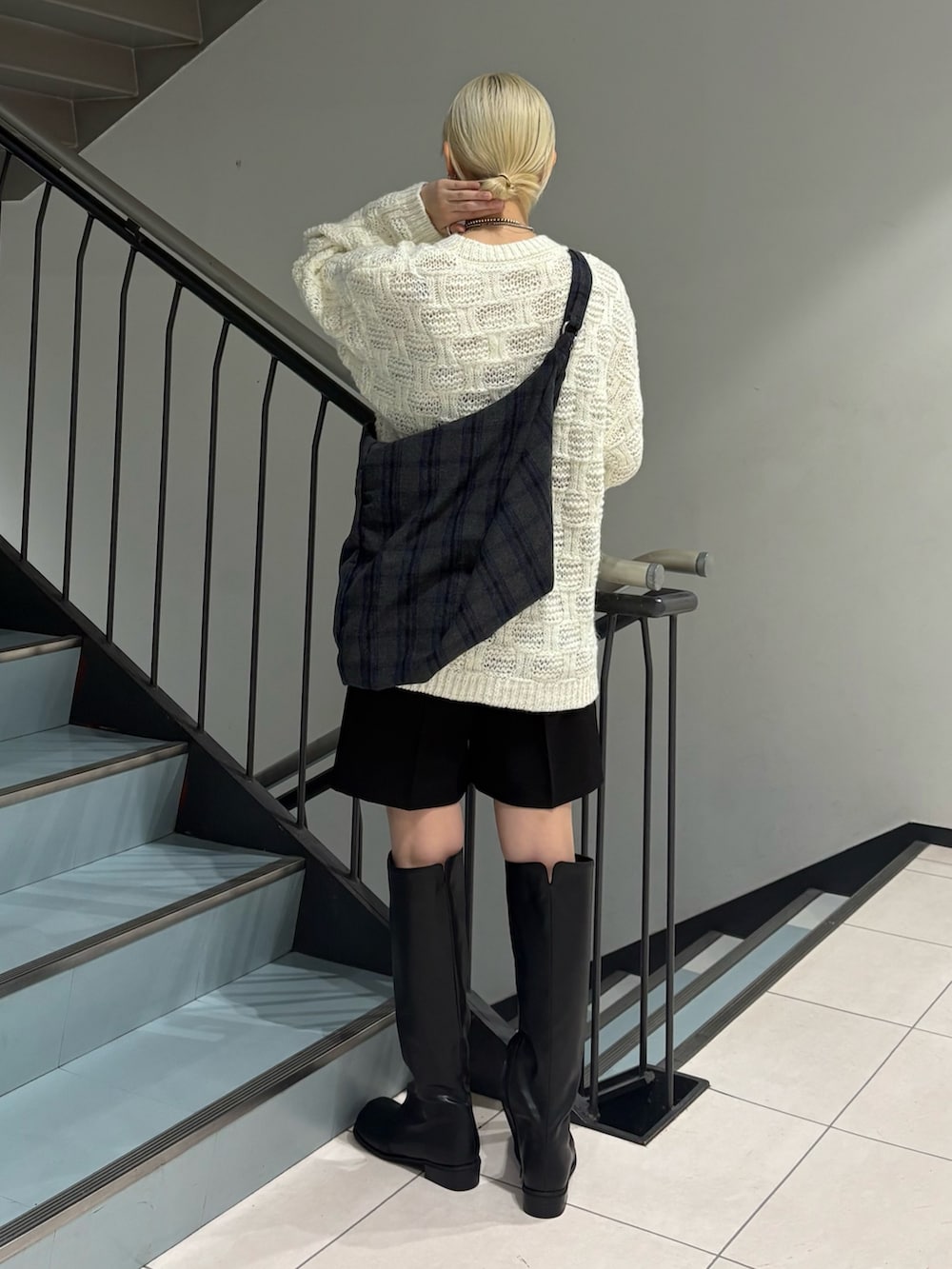 少しメンズライクな雰囲気があるのでボトムはショートパンツとロングブーツでレディ感をプラスしてみました🤍
