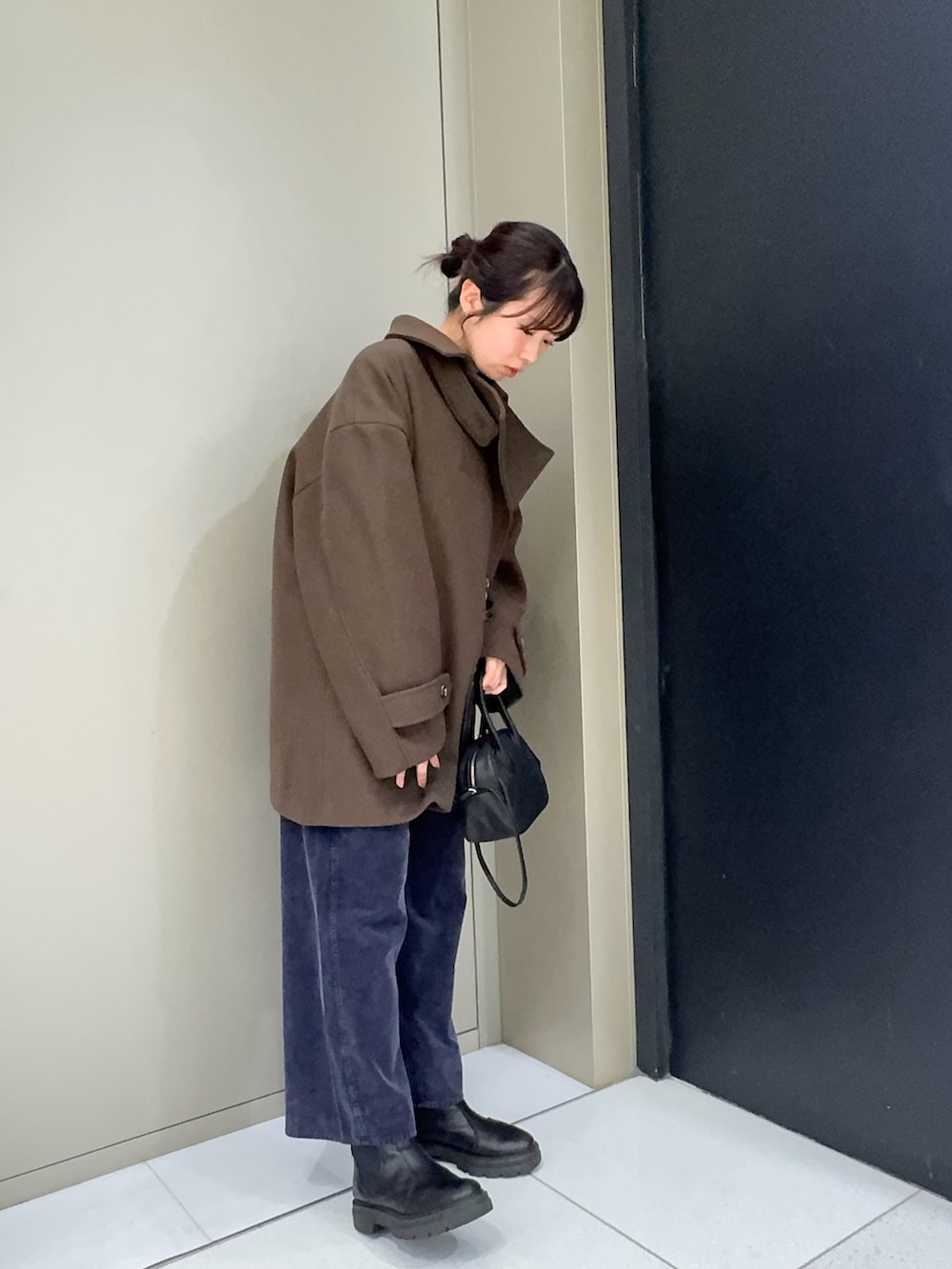 コートは大きめでゆとりがあるので、中にニットも着れますよ!