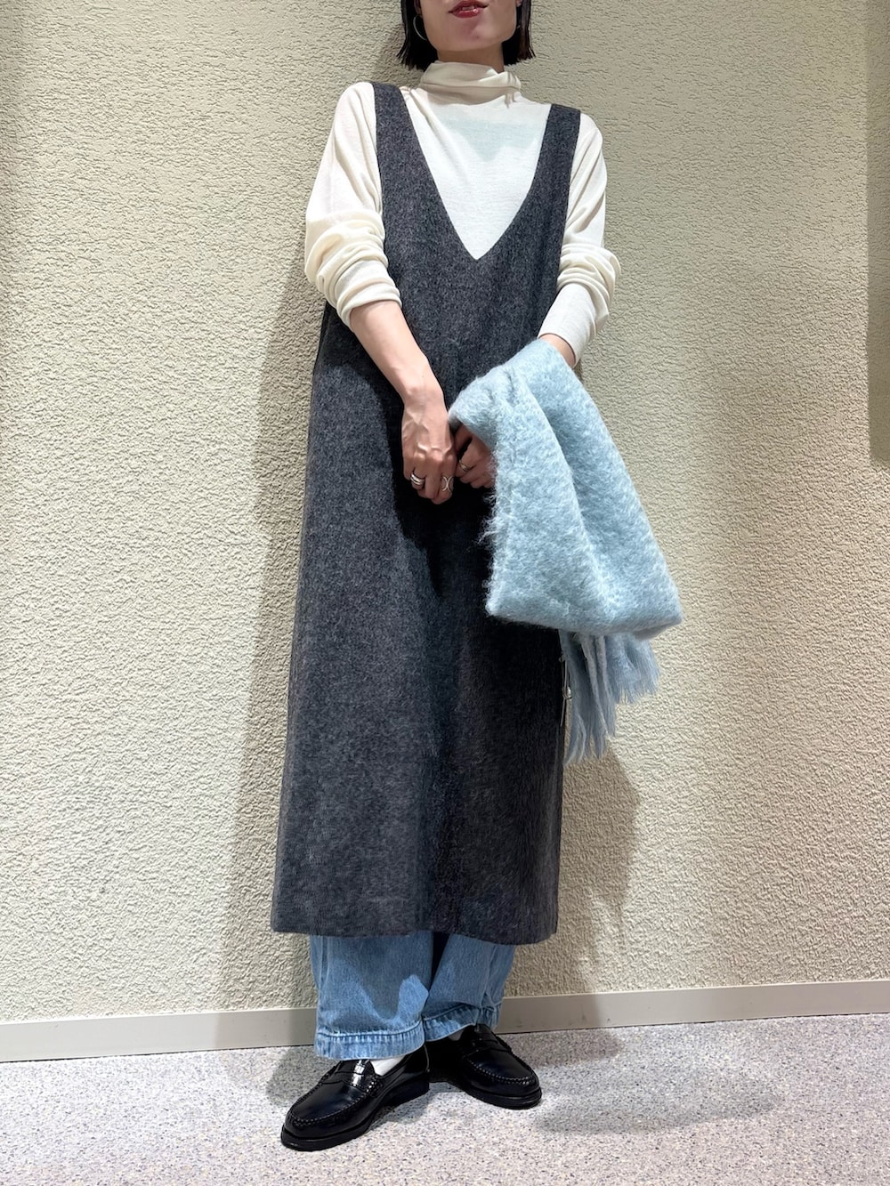 アルパカ混のウールシャギー素材で、季節感もあり1枚で映えるワンピースです。