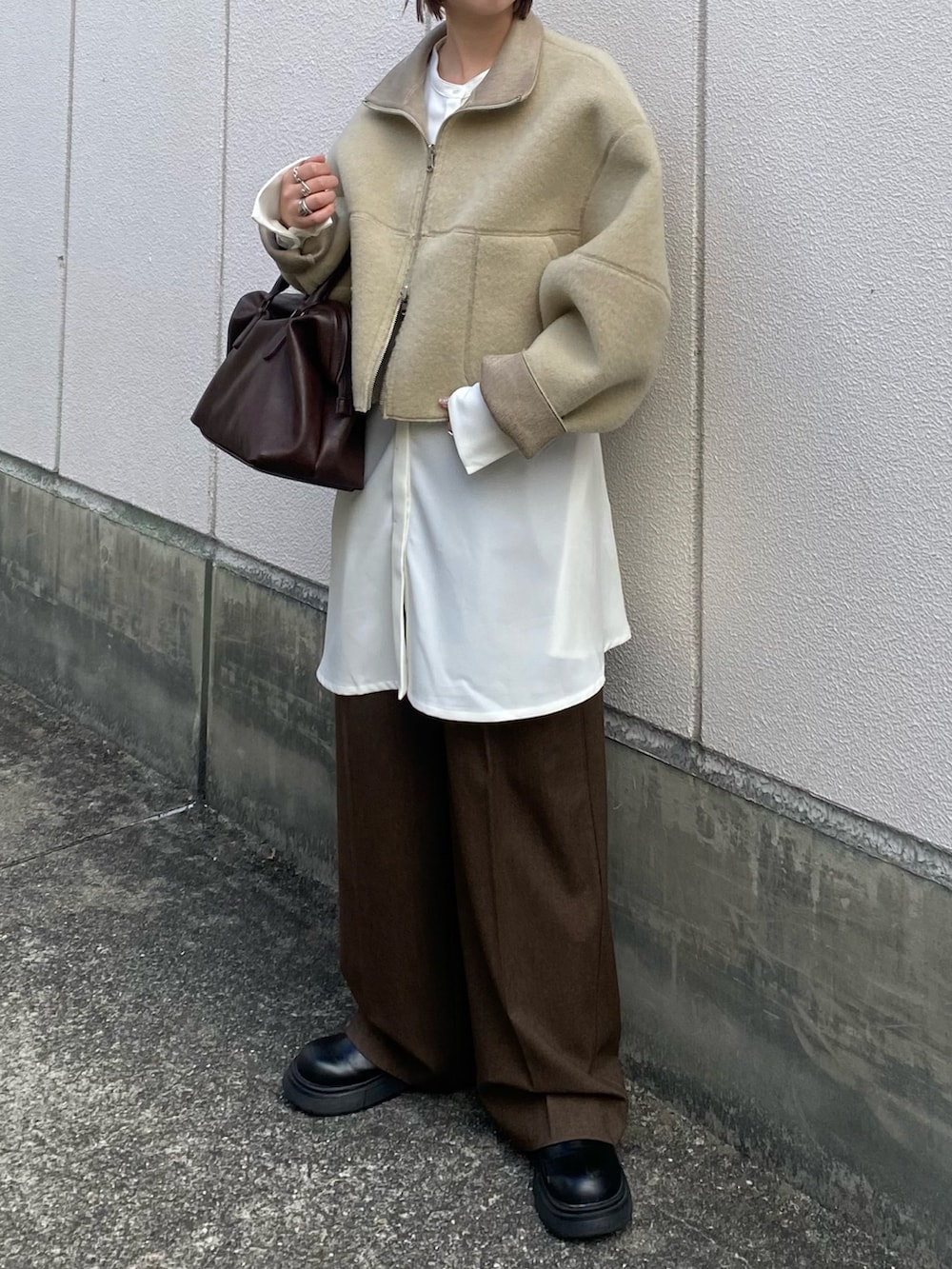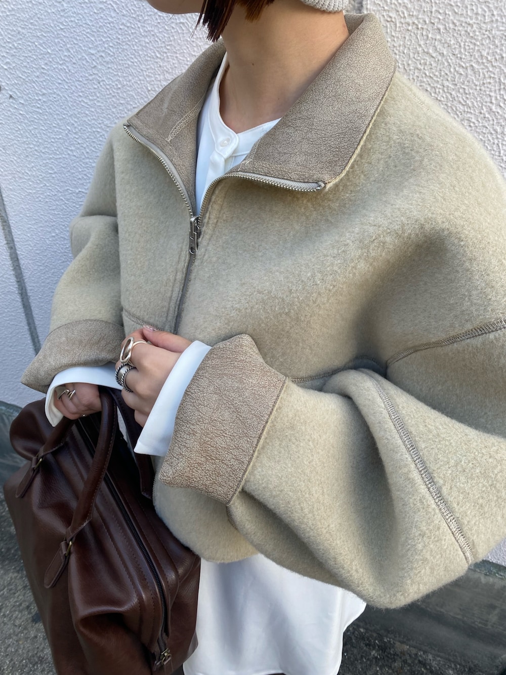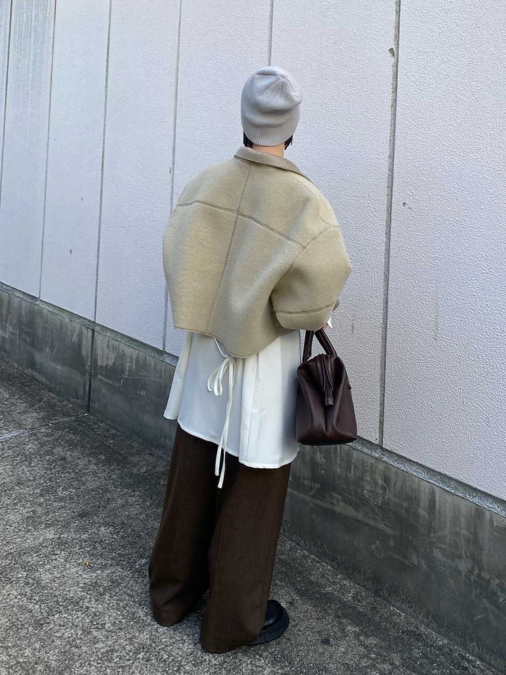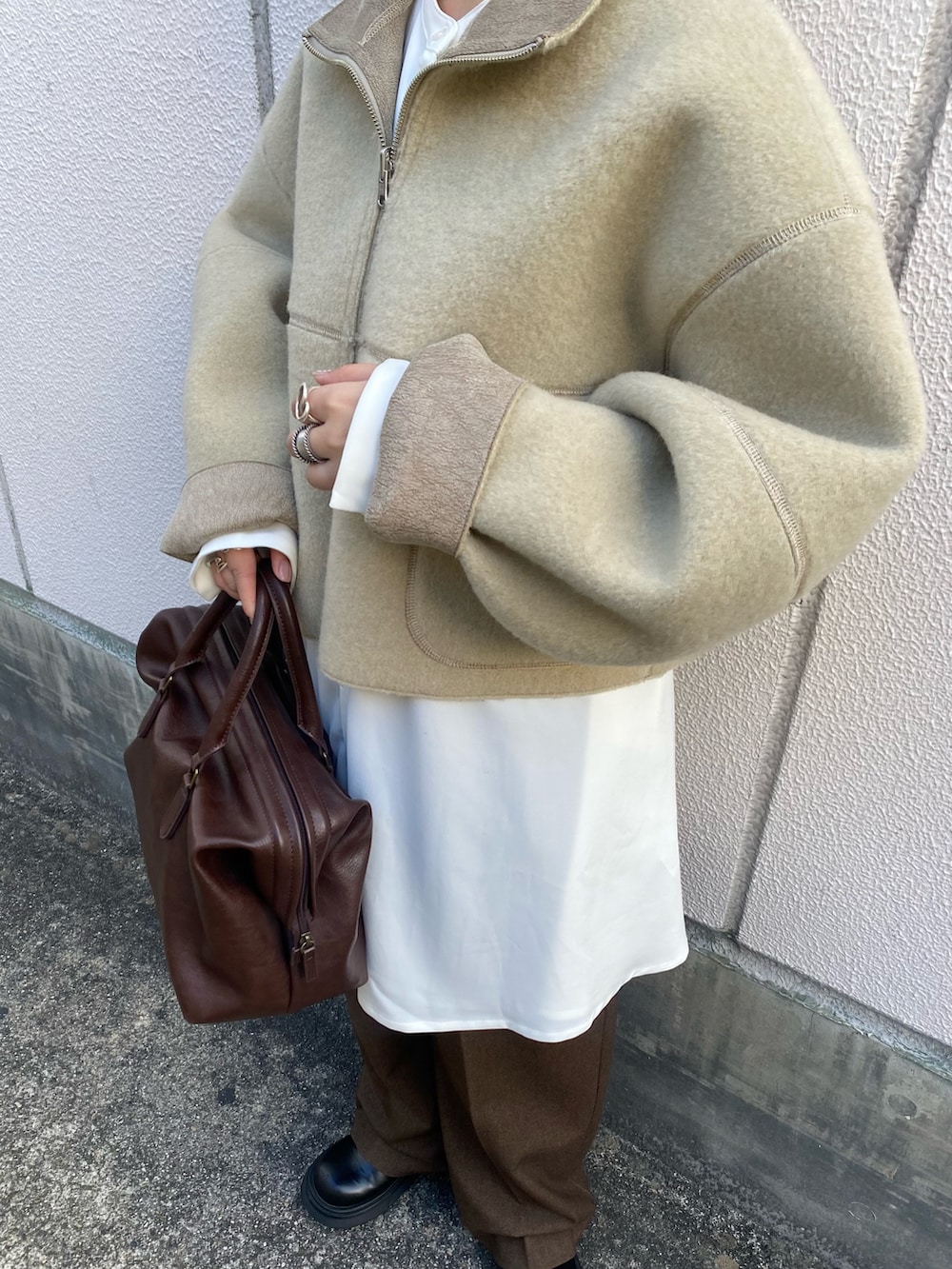 全体的にボリューム感がしっかりあるので、お袖や襟元をしっかり折り込むことで、すっきりとした印象で着ていただけます❕🙆‍♀️