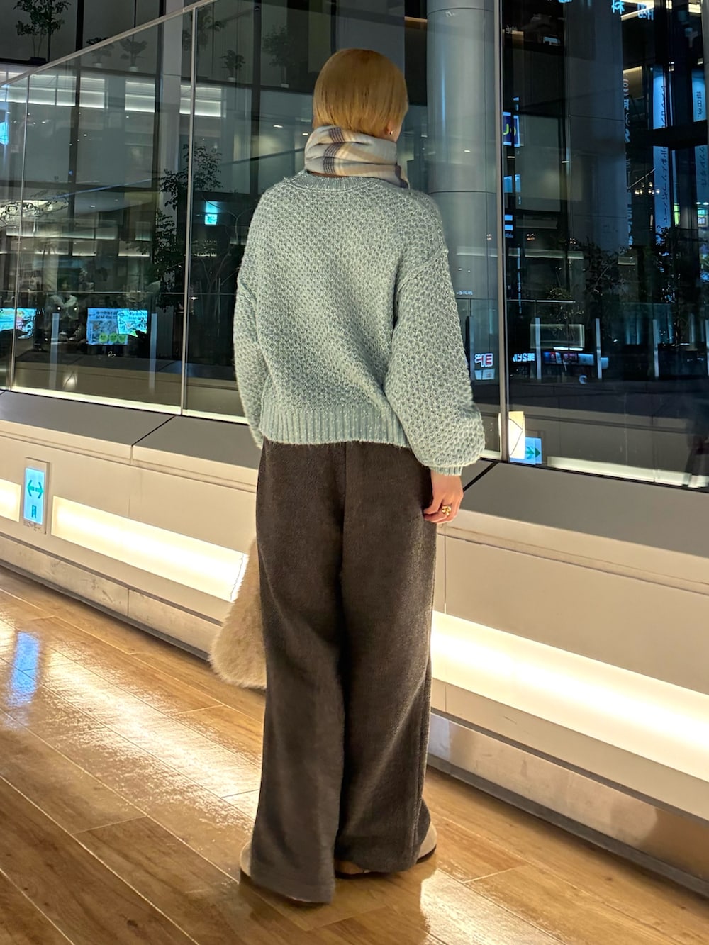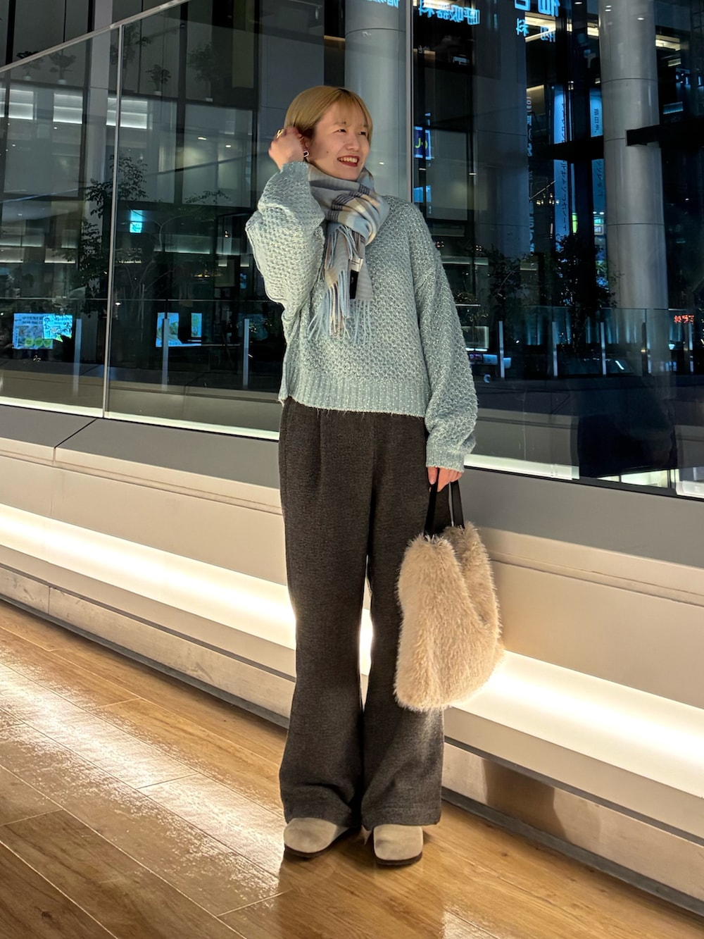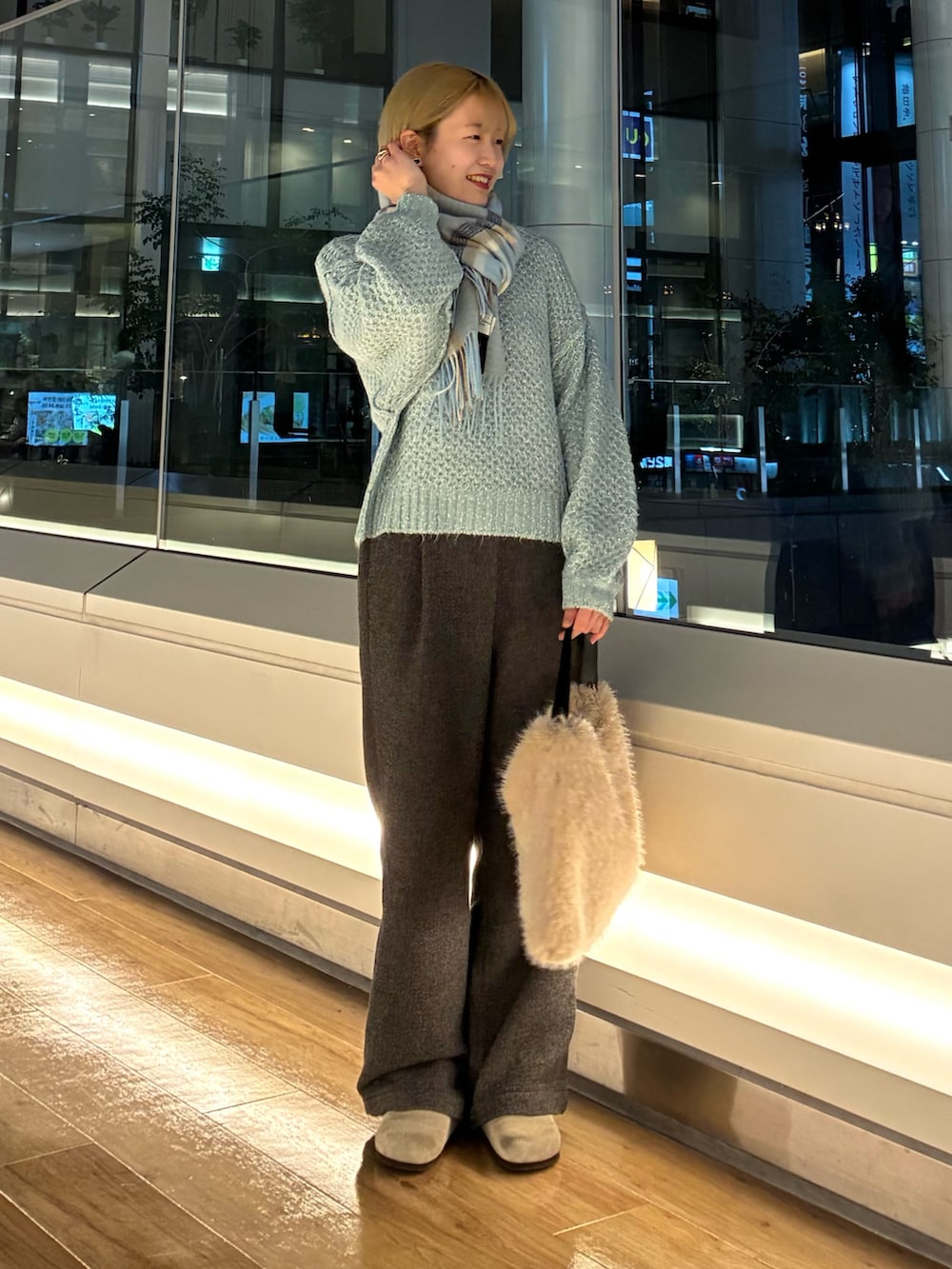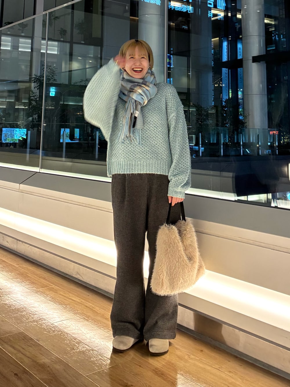 エカルのニットが映えますよね!!デザインも可愛くて、チクチクせず、着回し出来ますね!!