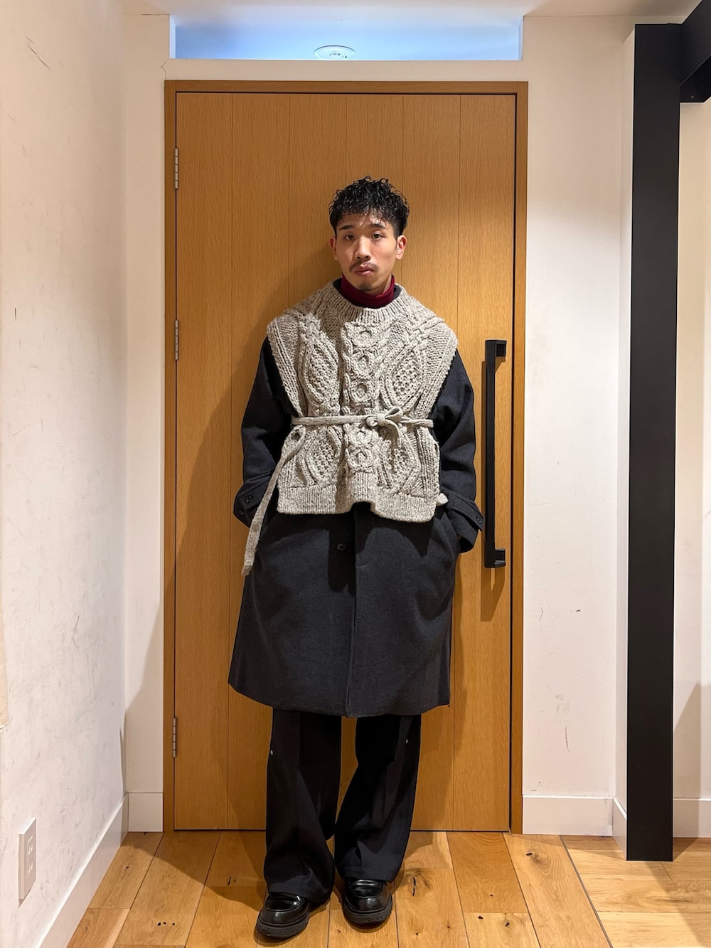 インナーには「かぐれ」のペルーアランニットベストを採用。中に来ても外に来ても違った雰囲気でお楽しみいただけます。