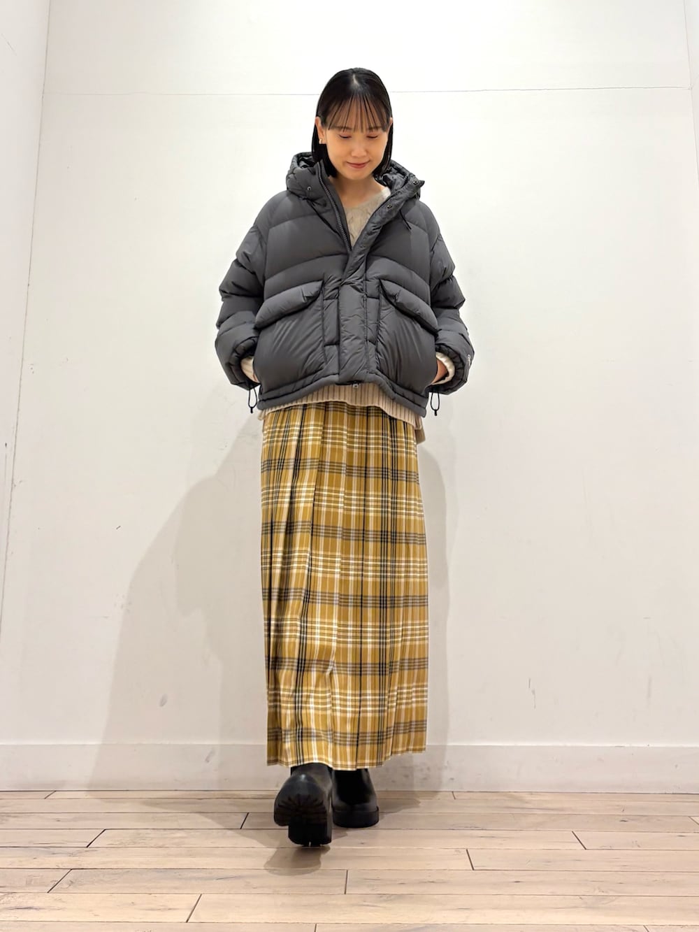 ゆとりはありながらもスッキリとした丈感で、スカートやワイドパンツとのバランスも取りやすいですよ👏