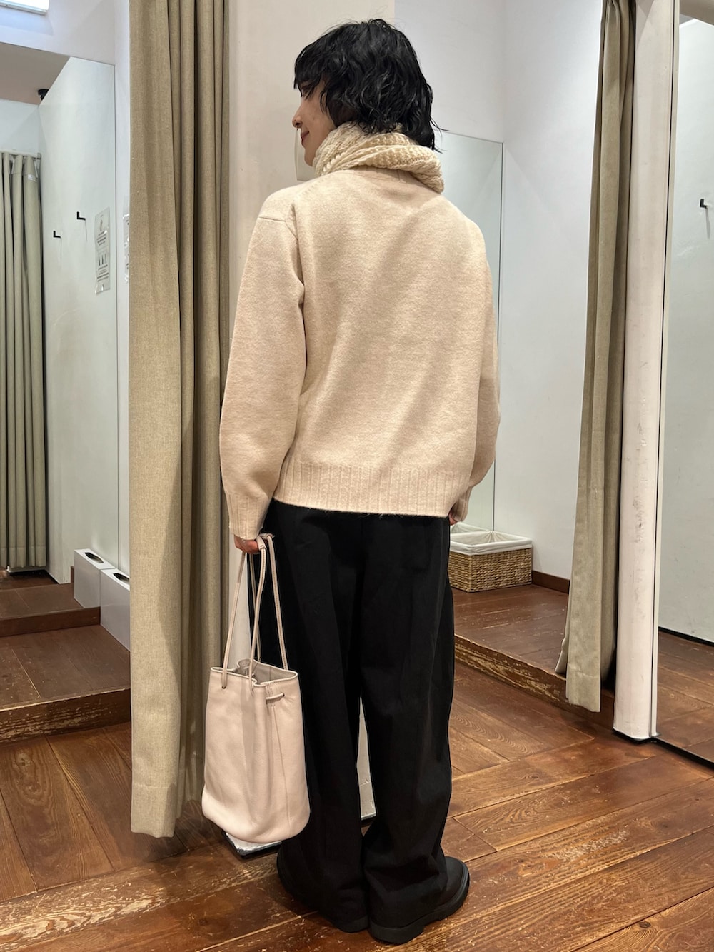 タートルに苦手意識があるかたでも、首が詰まりすぎていないので対抗なく着用いただけると思います。