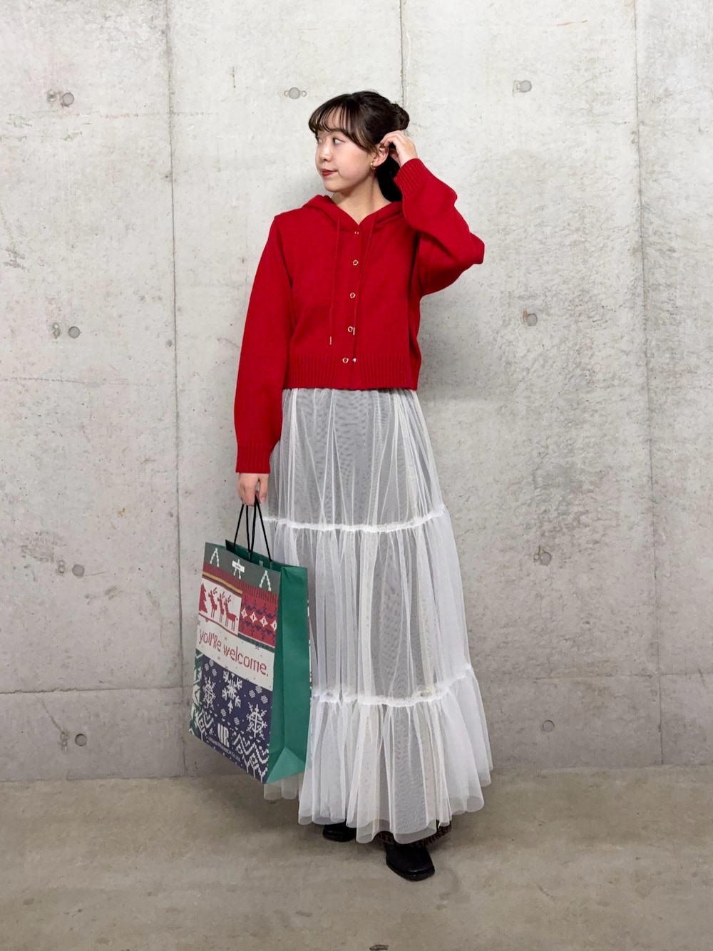トップスはほどよい丈感で、ショート丈アウターと合わせやすいのがありがたい☺️✨