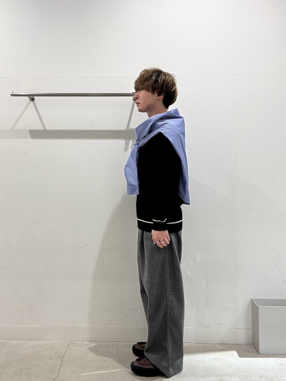 ラインニットに、シャツを肩にかけてみました!大人っぽい雰囲気が出るのでおすすめです!