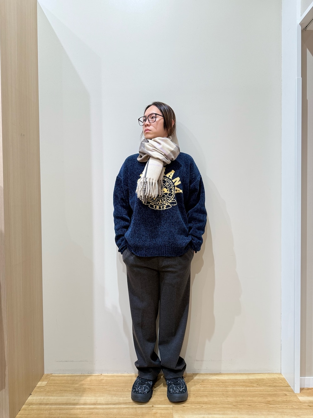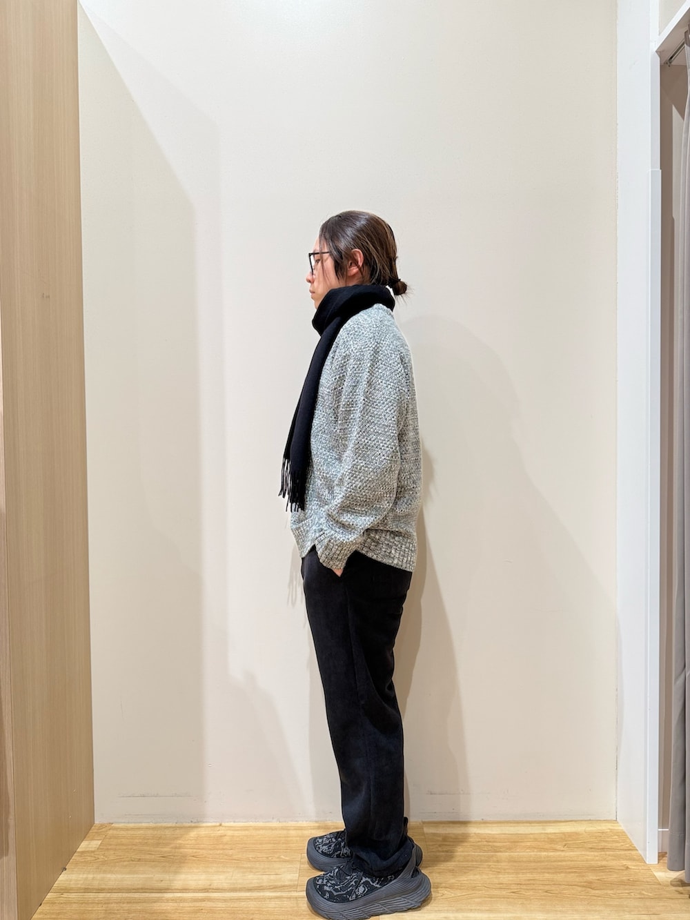 淡いグレーのカノコニットに黒パンツ&黒マフラーで、まとまり感のある落ち着いた冬コーデ✨