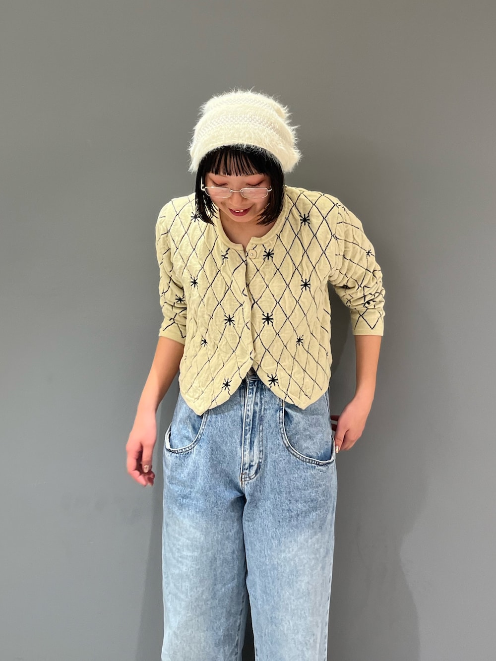 ぽこぽこしてるカーディガンはデザイン性ばっちりでおしゃれ感満載✨