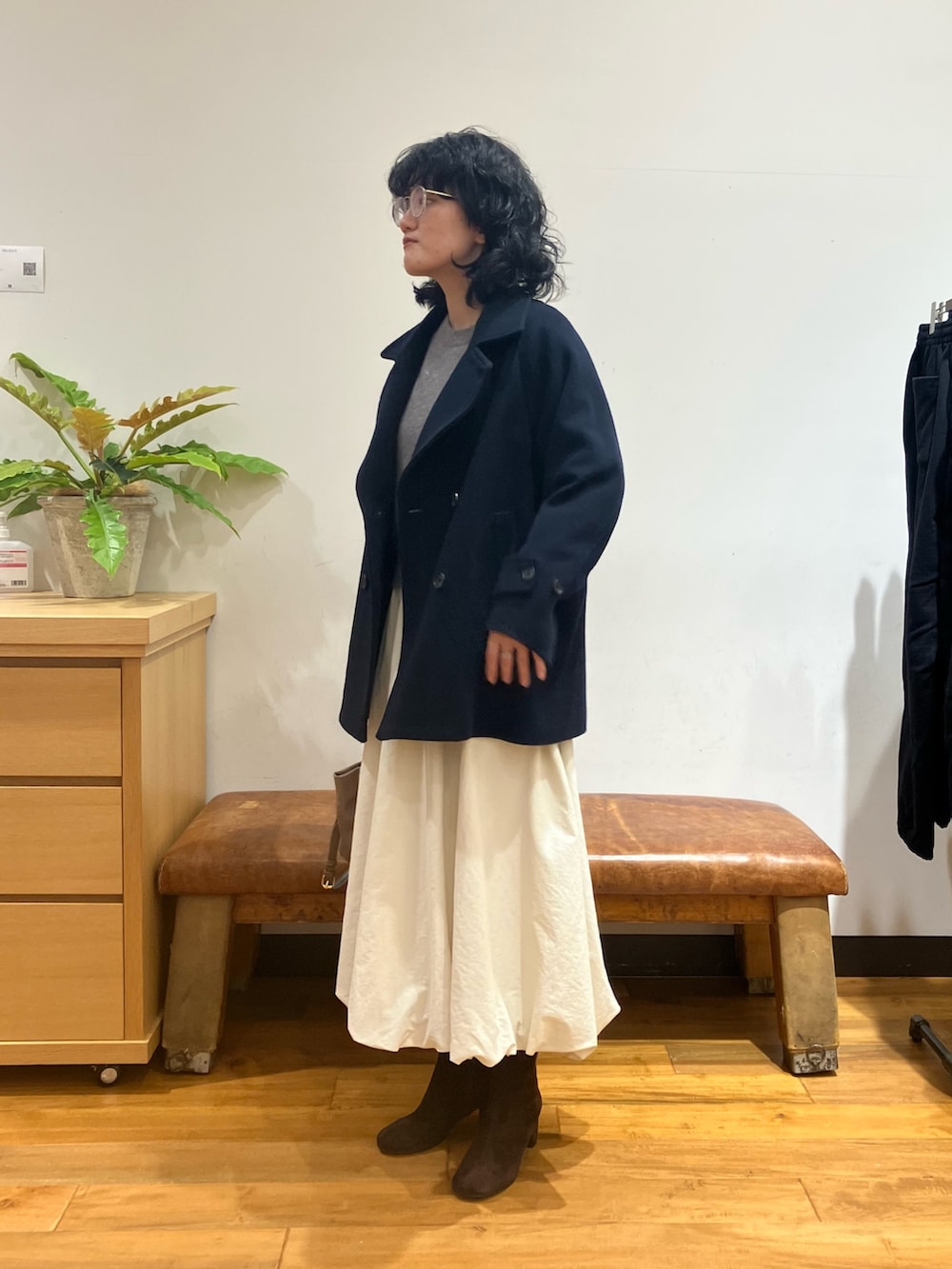 少し足首が見える丈感なので、大人っぽく上品に着こなす場合はブーツを合わせると足首が隠れて上品に仕上がります🤲´-