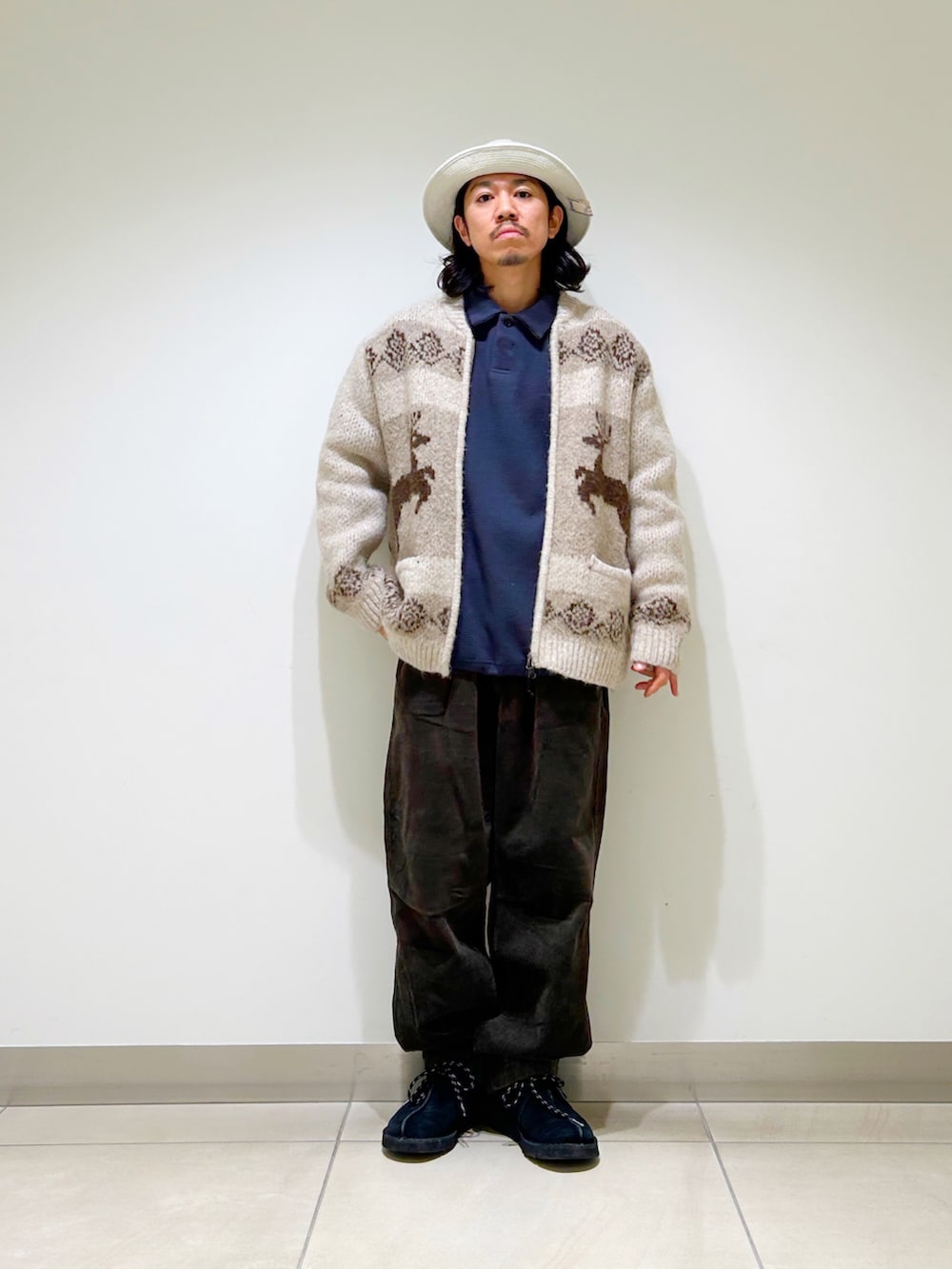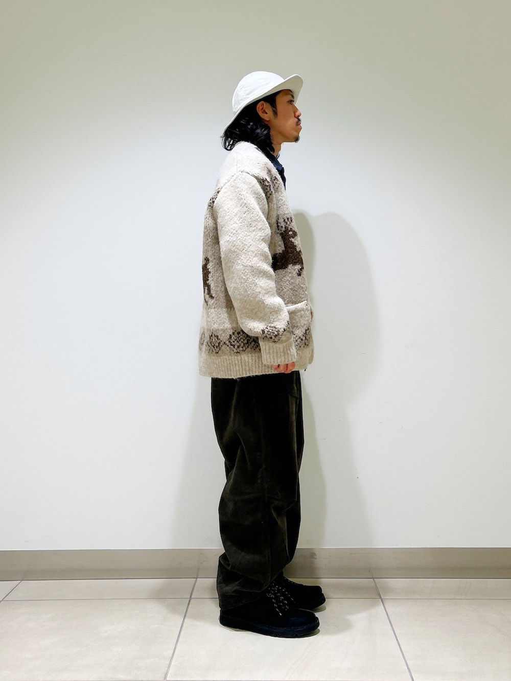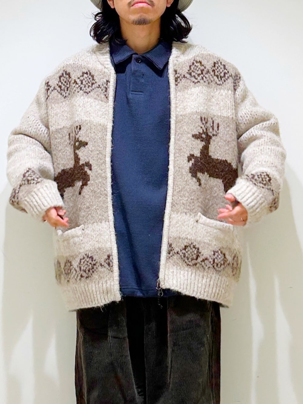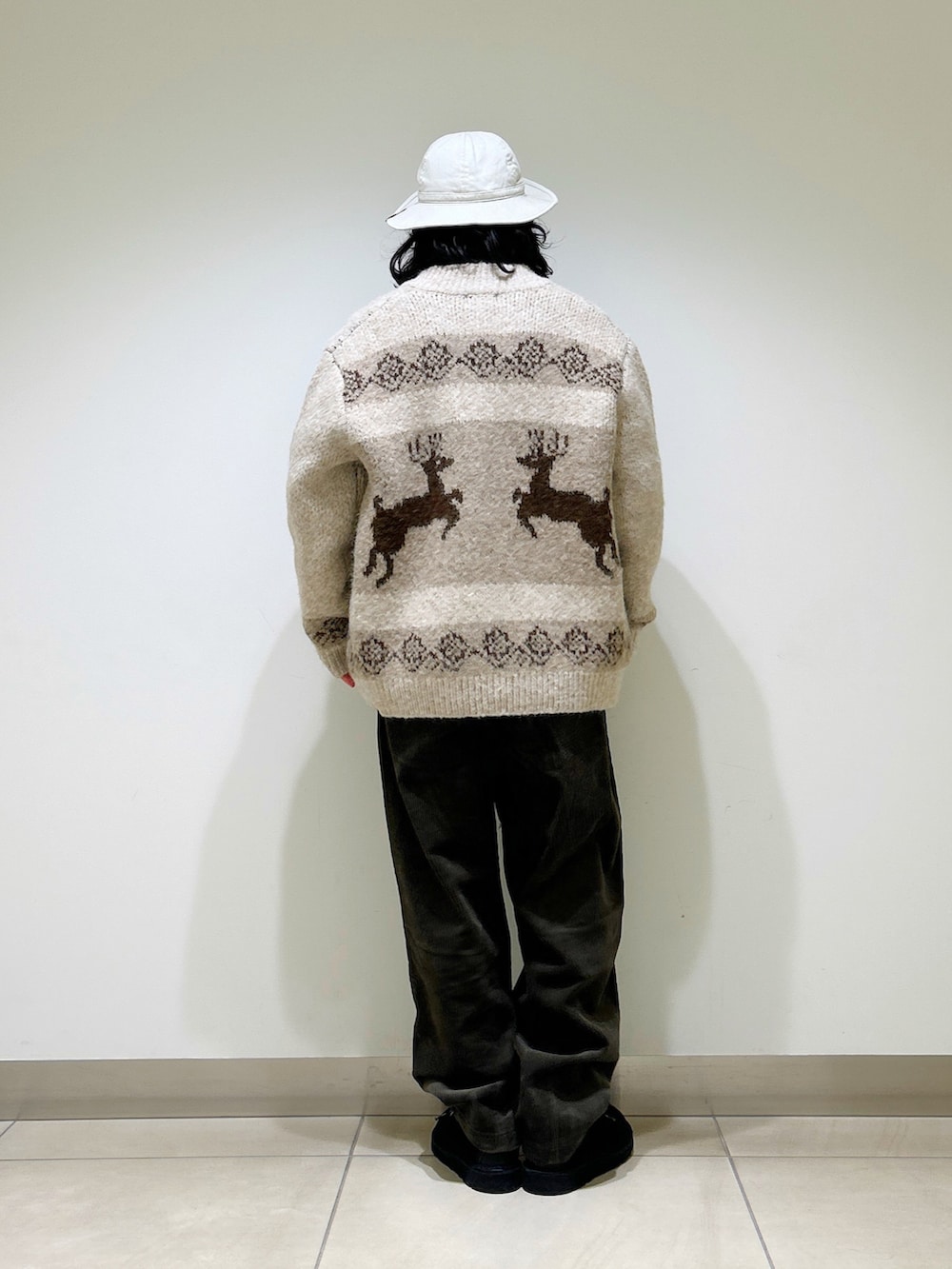 毛足のある糸を使用した暖かみのあるカウチンニット。