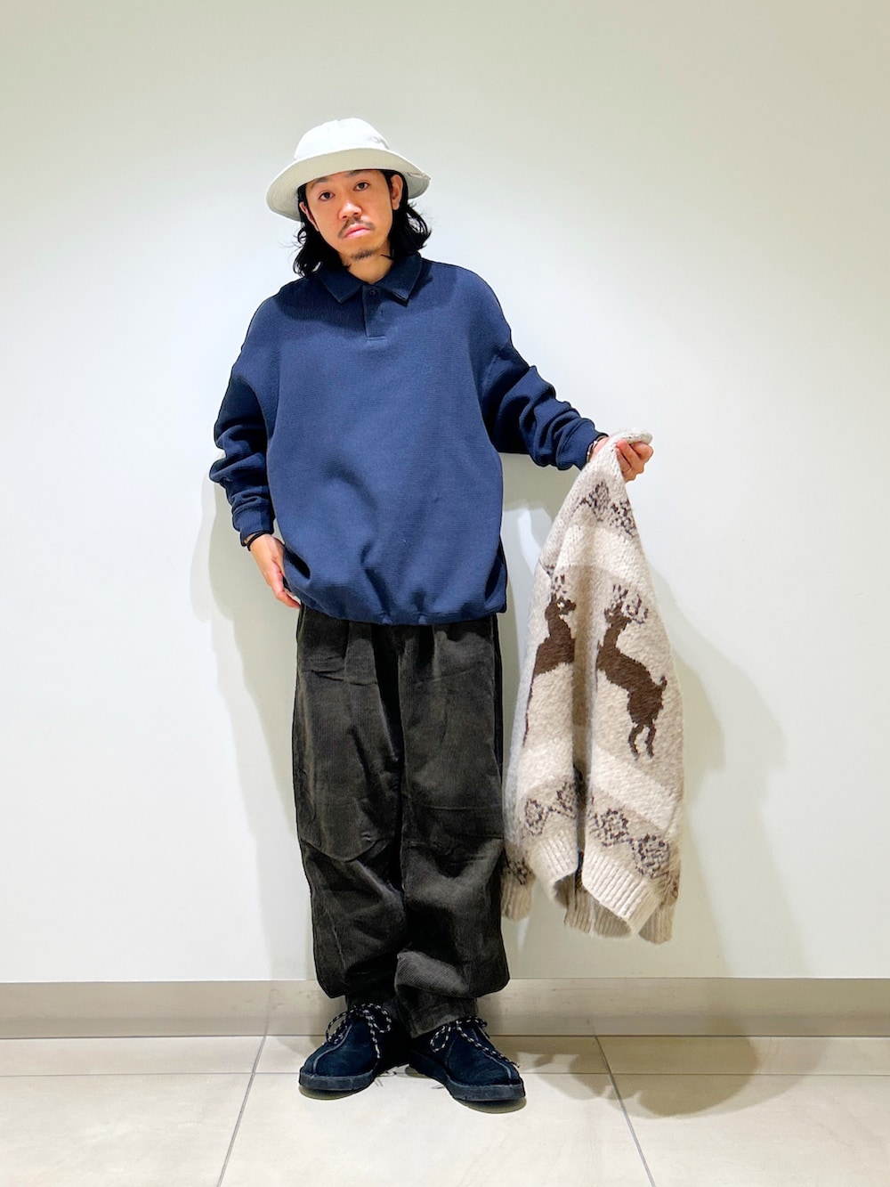 リサイクルポリエステルを主原料とし、空気を含む糸の作りによりバルキー性の高い素材を使用したニット。しっかりとした3Gの天竺編みを採用しています。