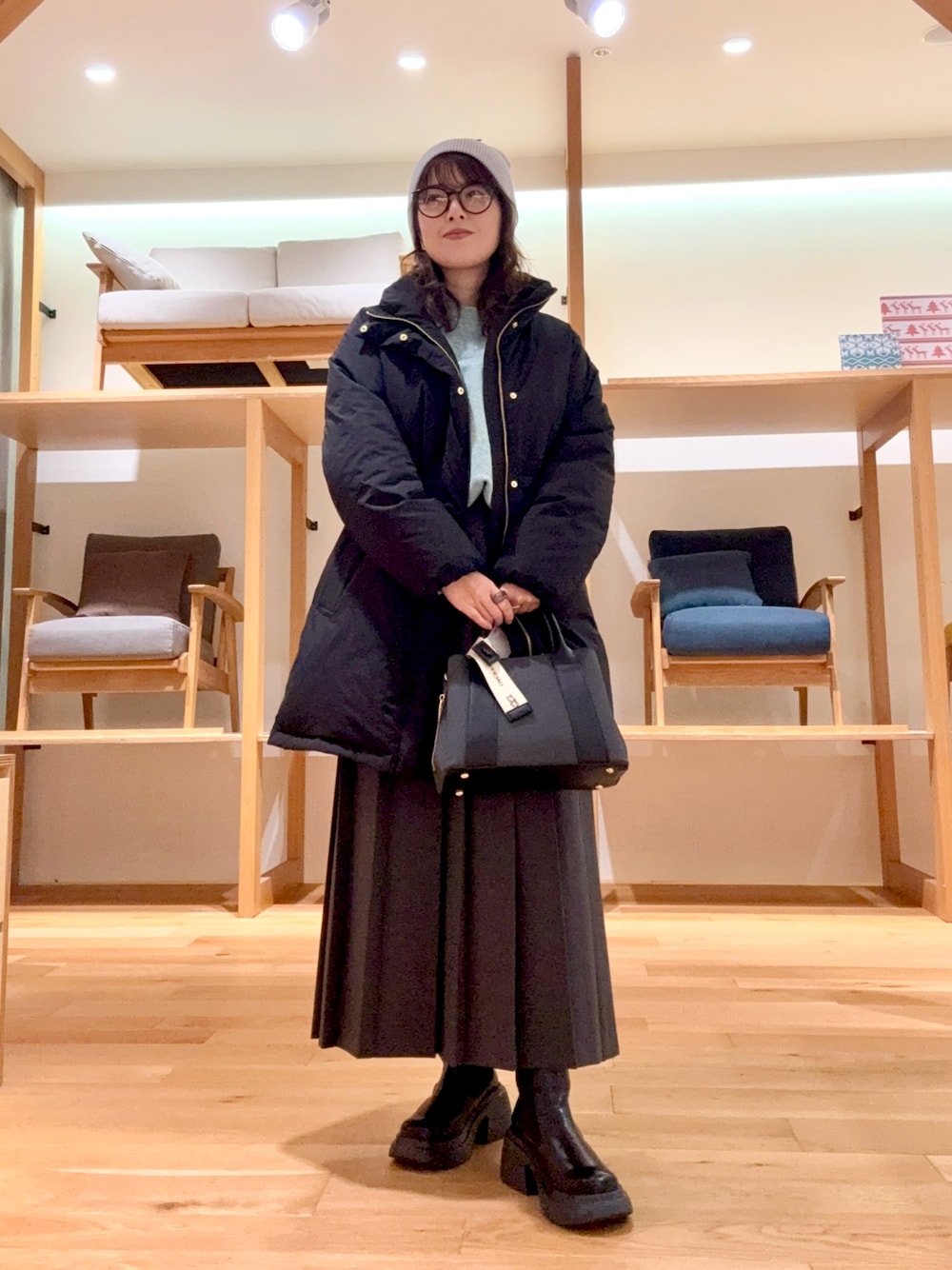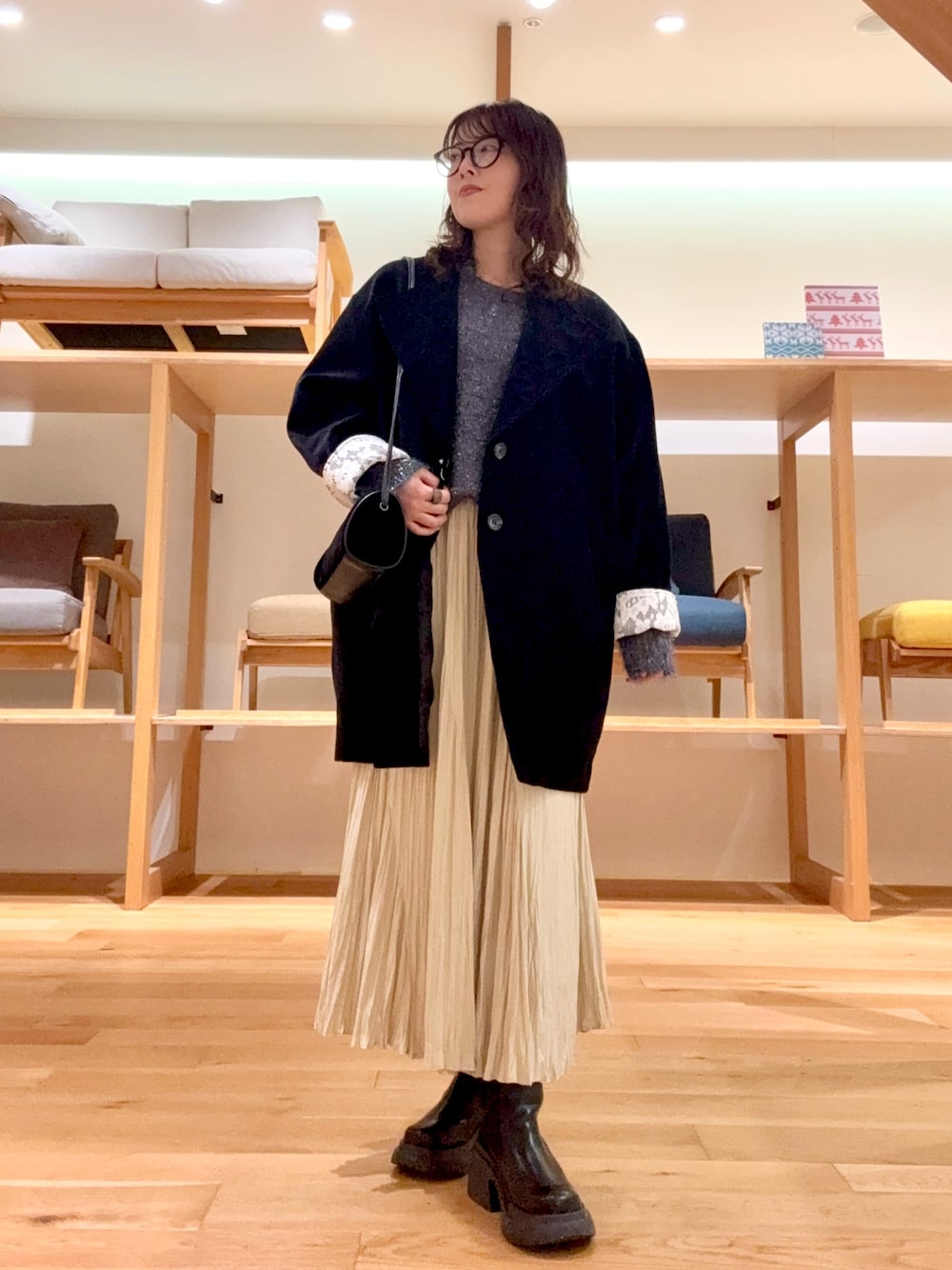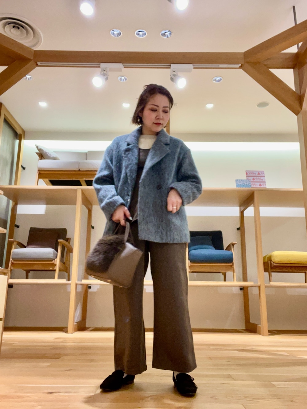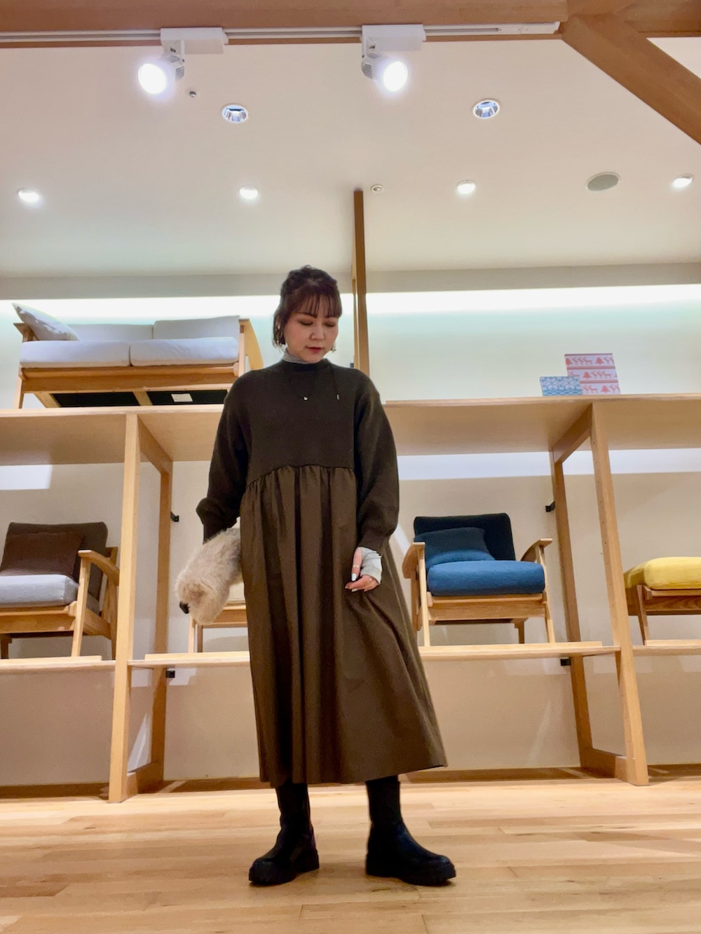 ニット切り替えワンピースは、一枚でも様になりますがハイネックを入れてポイントにしました‼︎