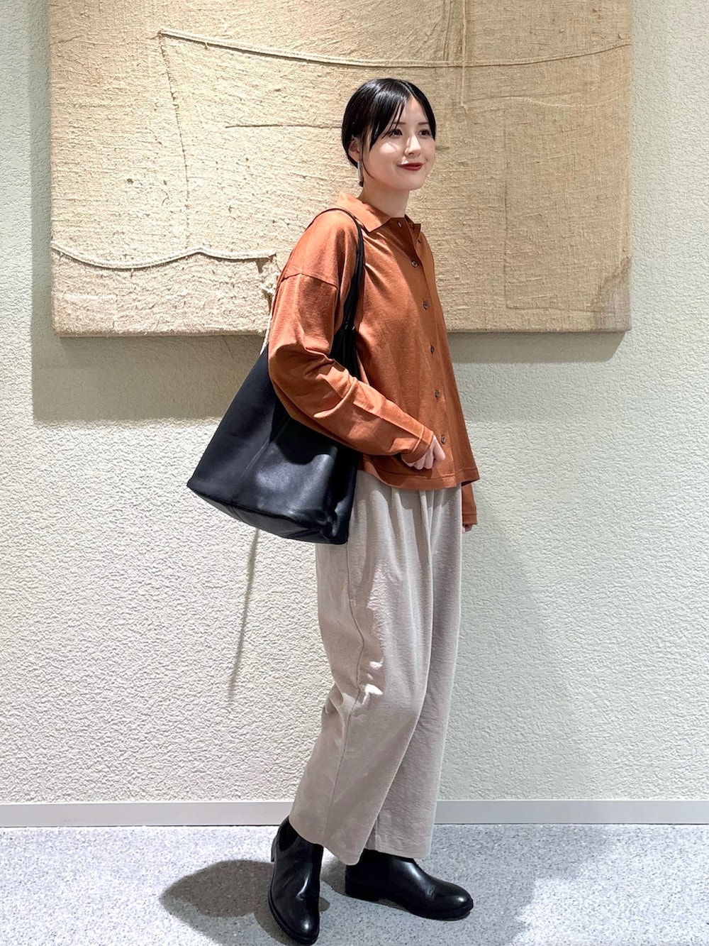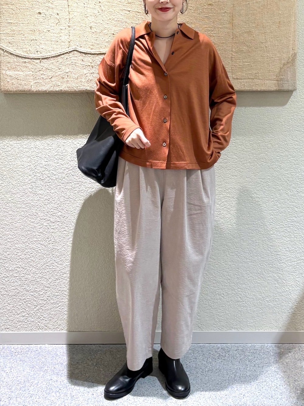 上品な光沢としなやかな落ち感が魅力のウールカットシャツ。暖かさがありつつ軽やかな着心地で、秋冬のインナーとしても一枚着としても活躍します。深みのあるアンバーが装いに季節感を添え、顔まわりを華やかに見せてくれます。