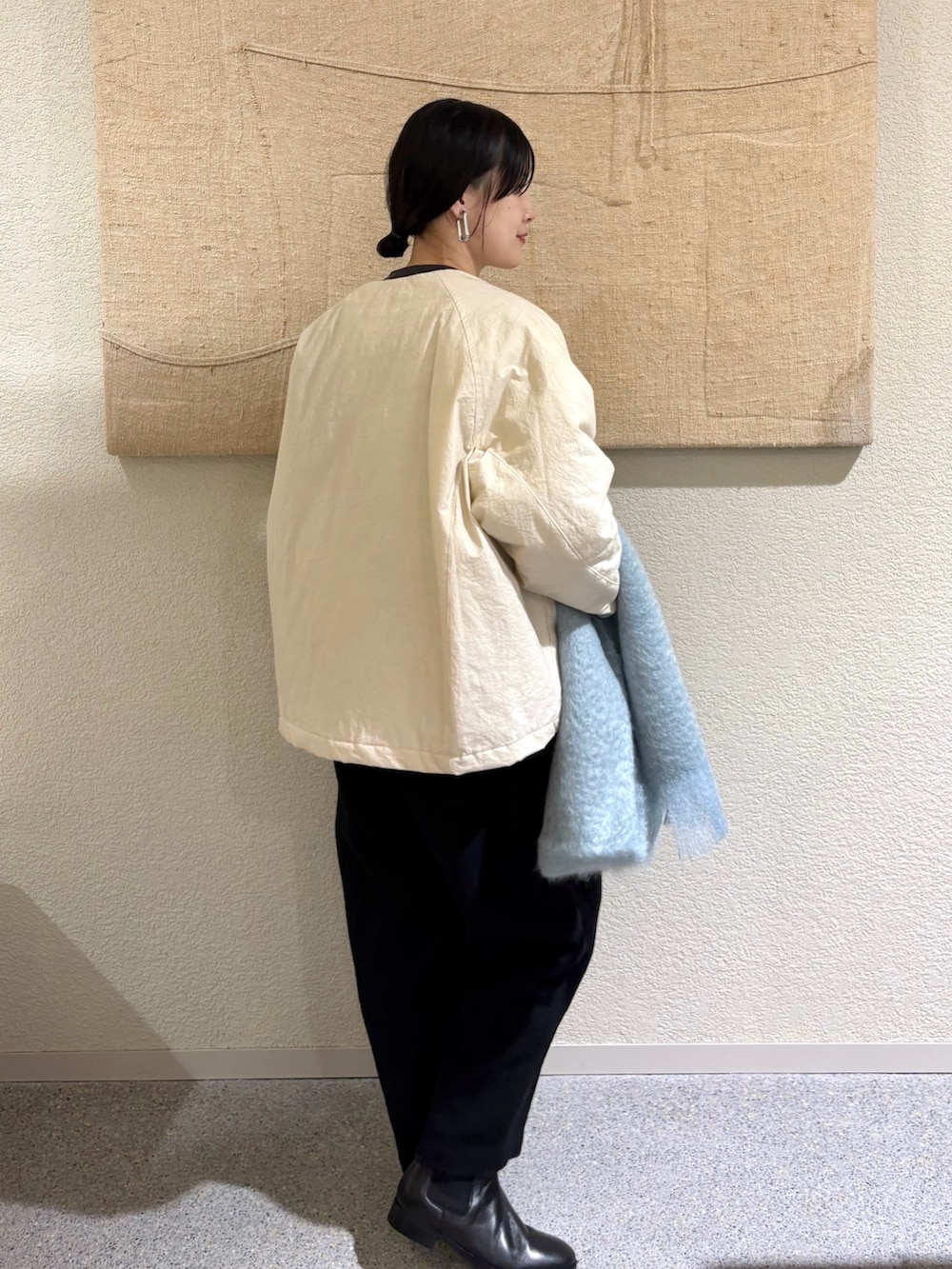 軽やかなキルティング素材が、秋冬の装いをやわらかく上品にまとめてくれるショートコート。程よいボリューム感でレイヤードもしやすく、カジュアルからきれいめまで幅広く活躍します。