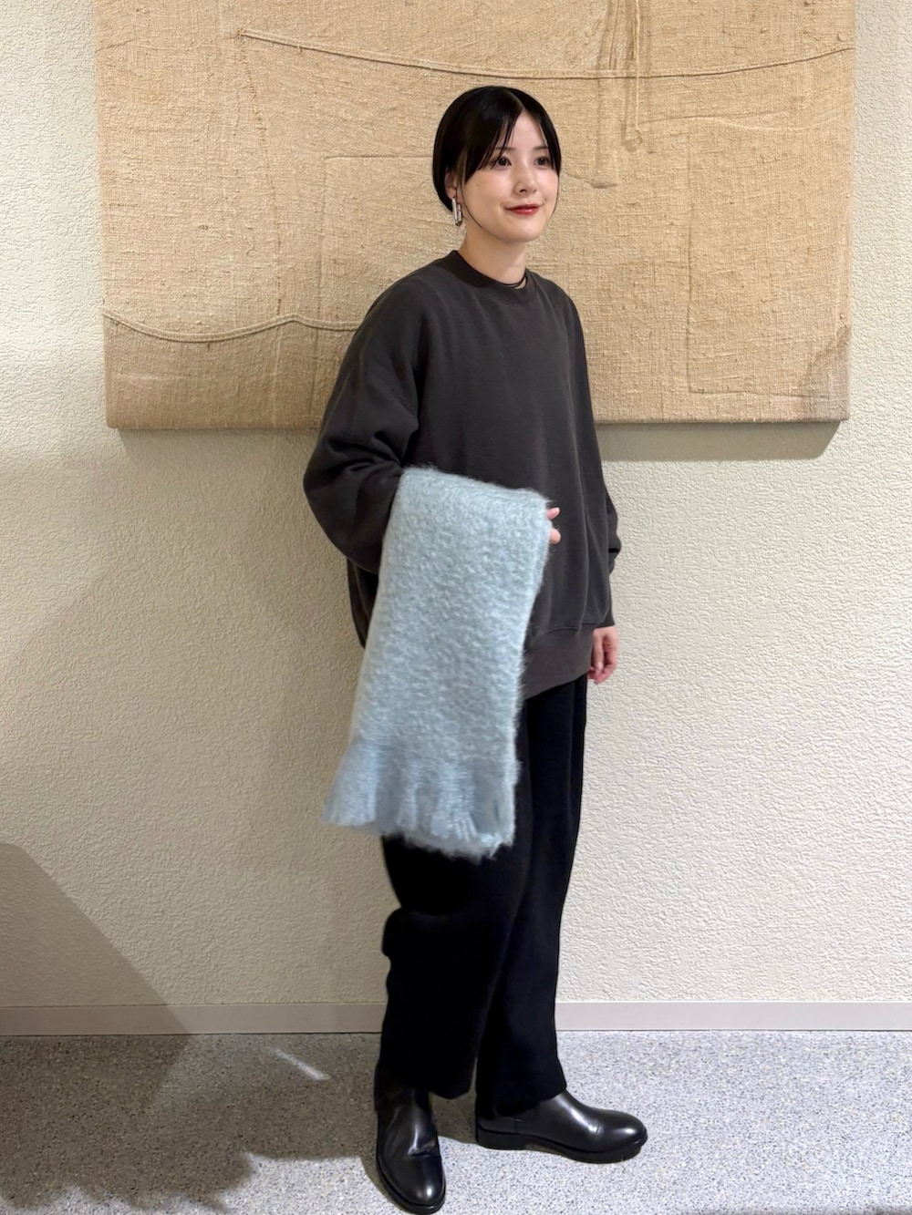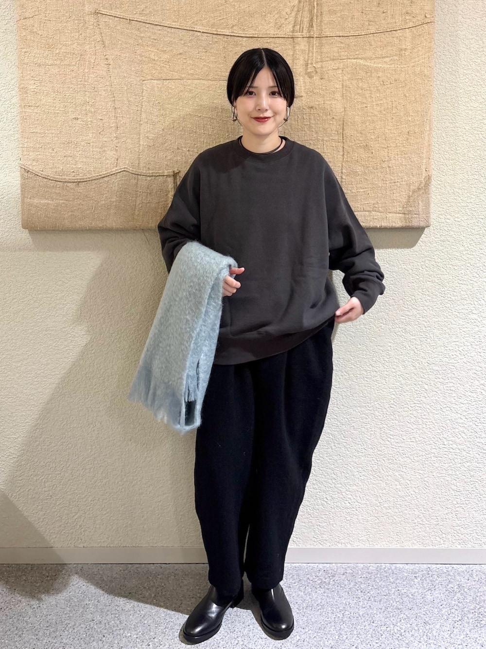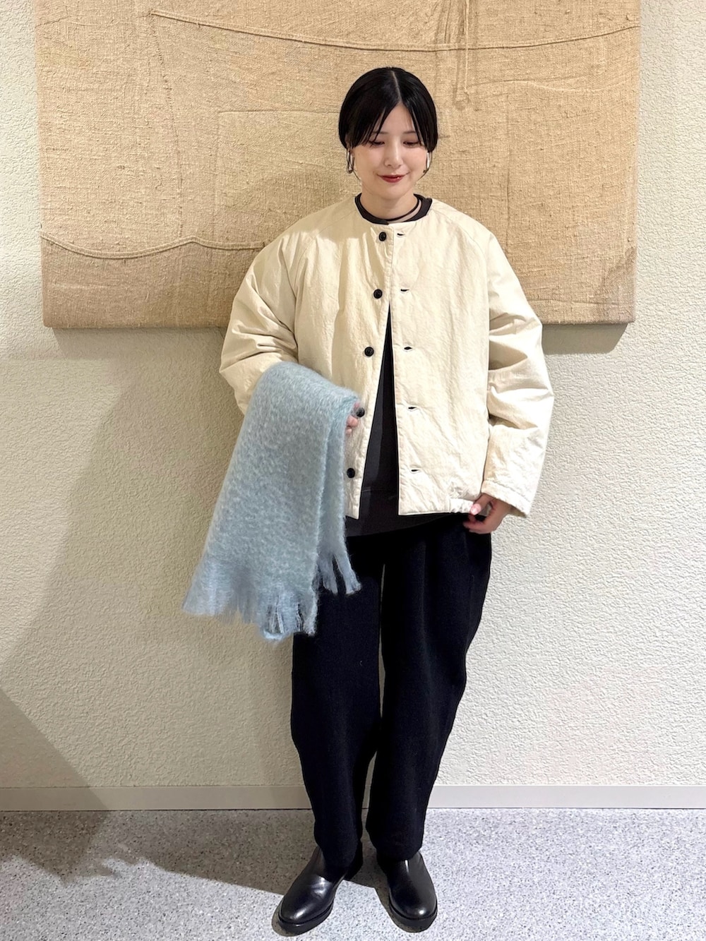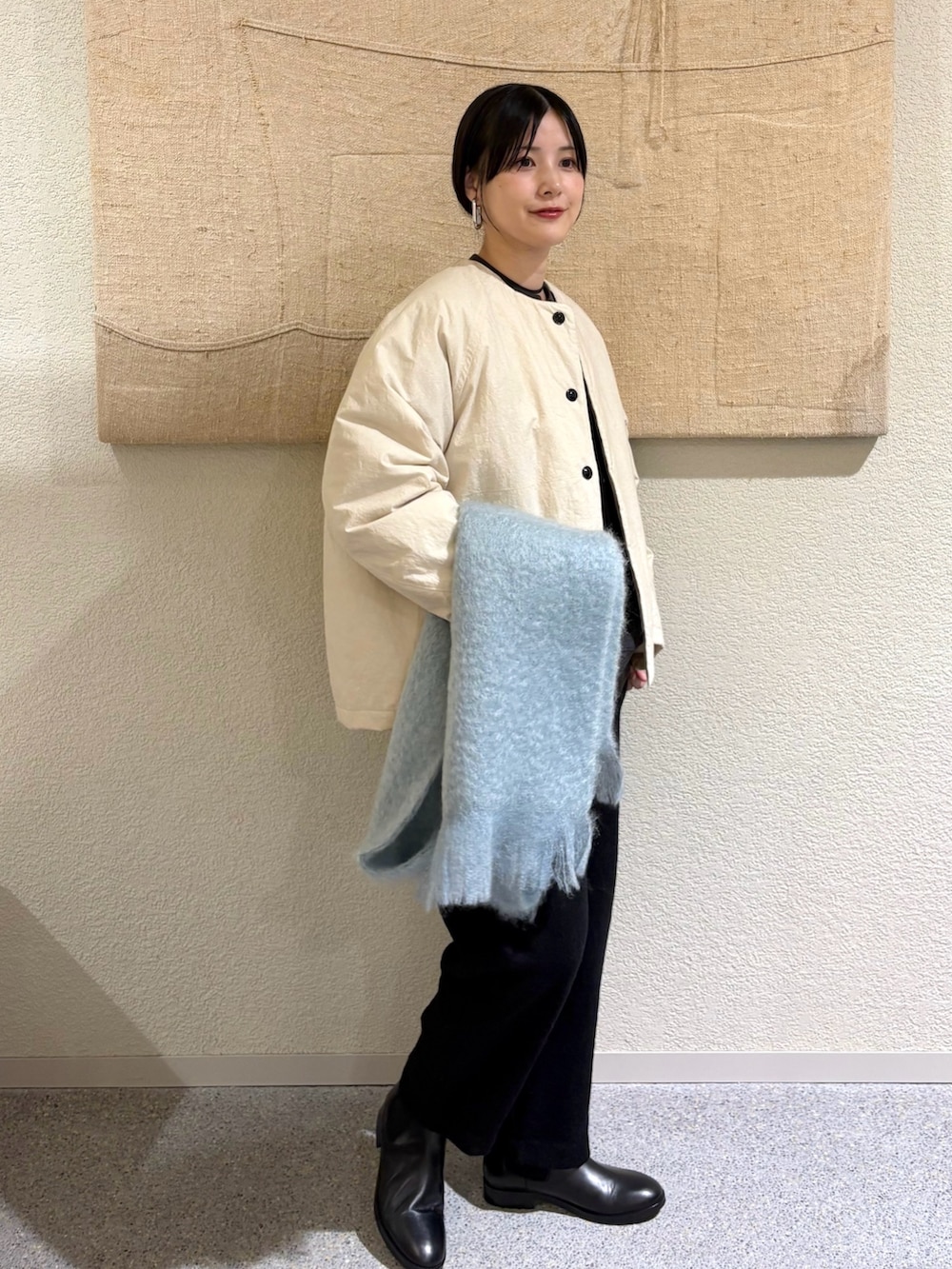 ・アイボリーのコートとチャコール×ブラックのシックなカラーで冬の大人モノトーンに