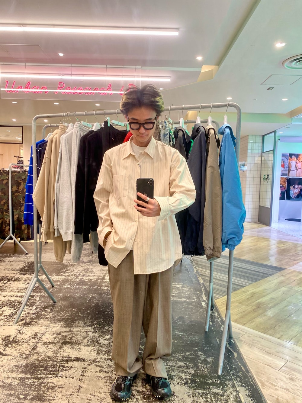 コートは落ち着いたカーキ色を採用し、パンツは、白が入っていることによって明るい印象を持ちやすいパンツを採用しました!