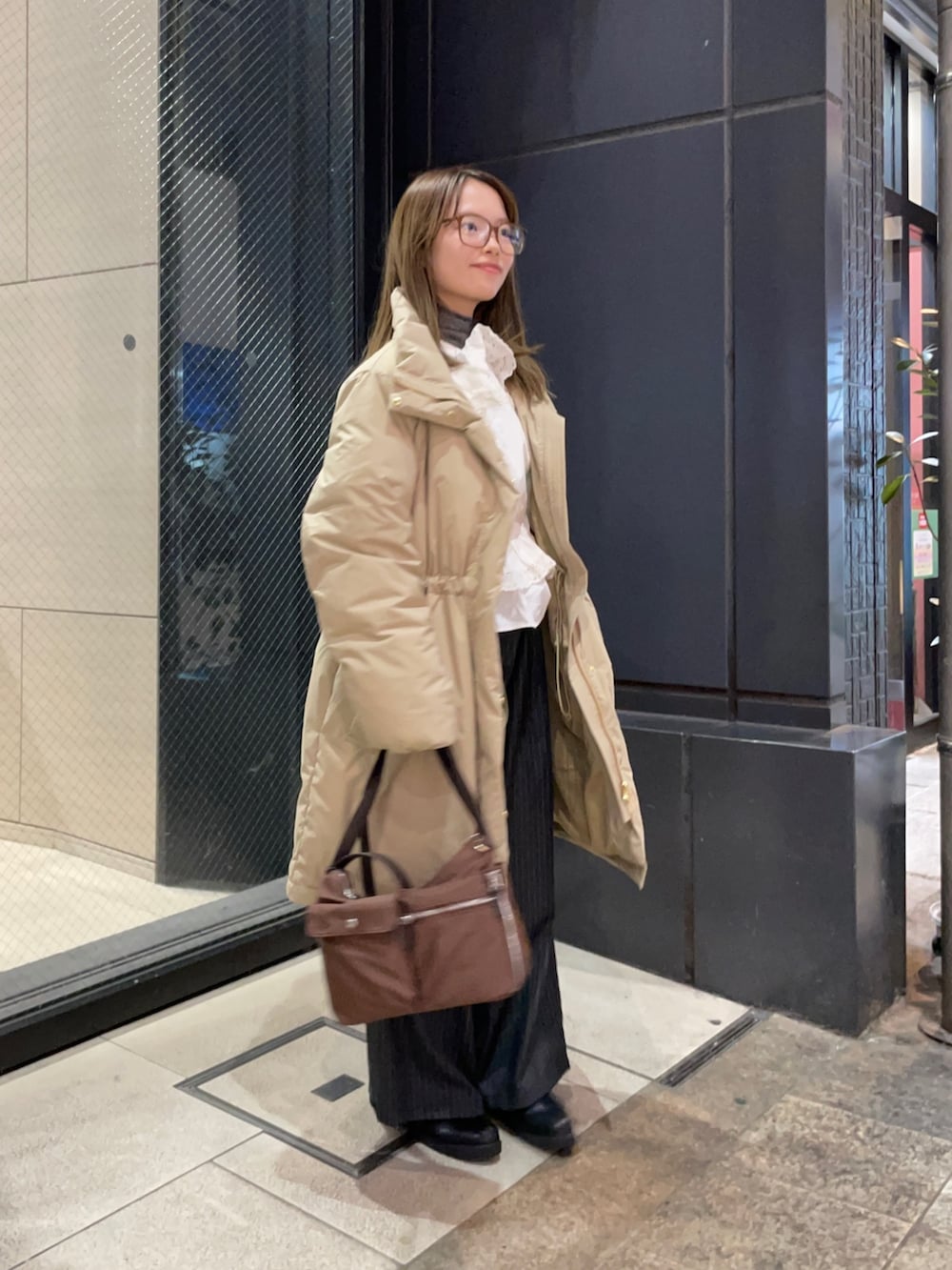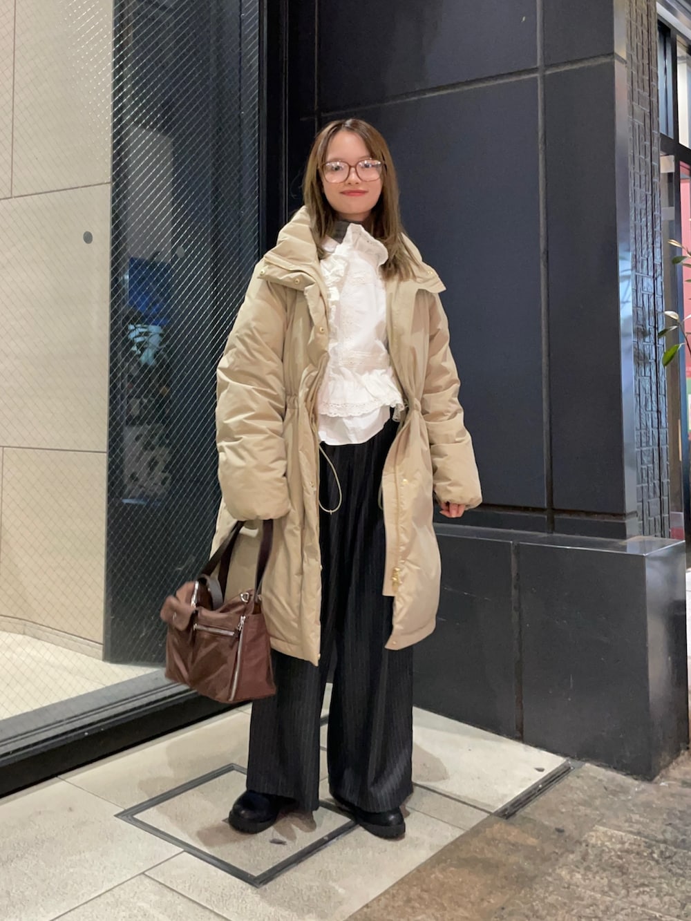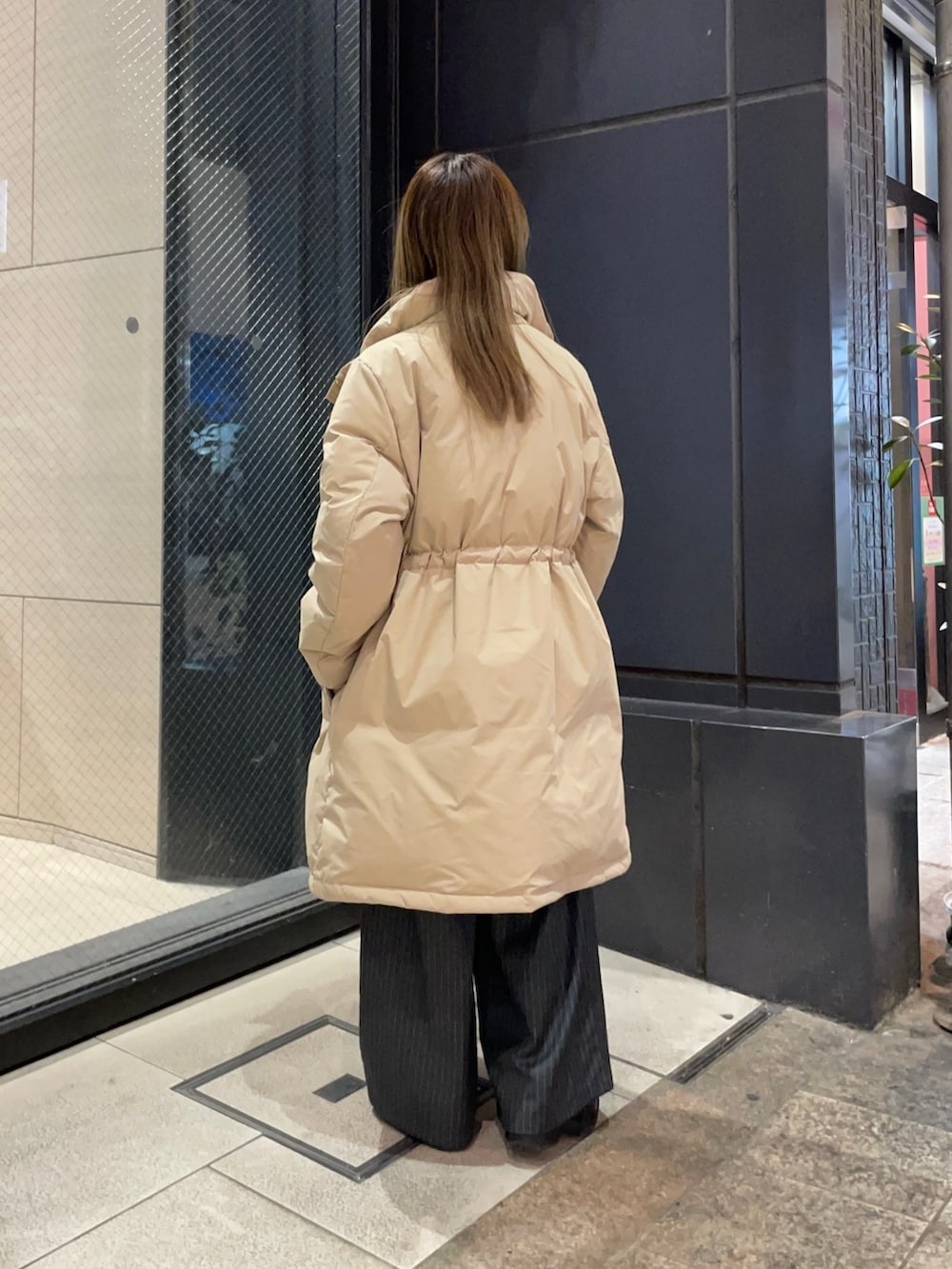 ダウンは、低身長だと膝あたりまできてくれる着丈の長さとウエストが絞れるデザインで、スッキリ見せてくれます♪暖かく軽く着やすいですよ!