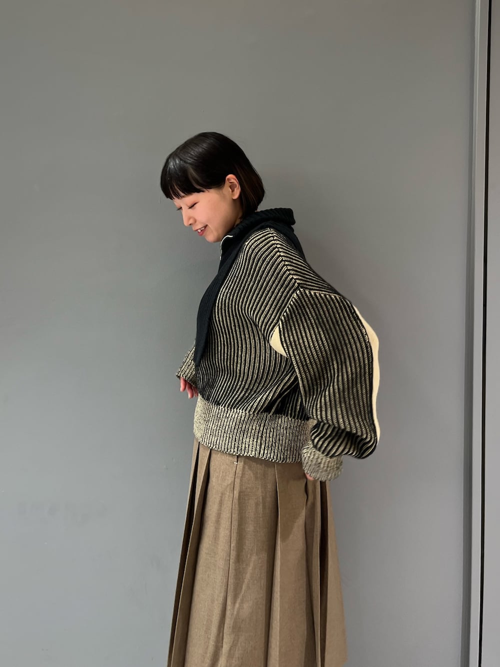 半分開けて襟風に着ても