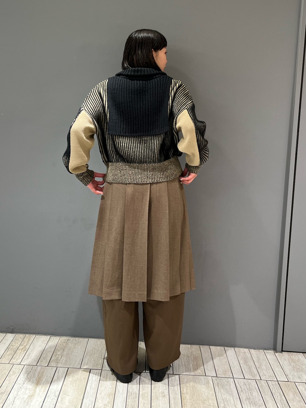 レイヤード風に見えるニットは1枚でおしゃれ度アップ↑↑