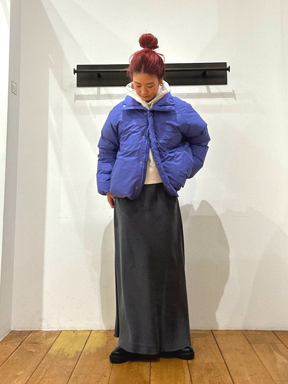綺麗めスカートにスポーティなアウターとスウェットパーカーを合わせて頑張り過ぎないコーデ!