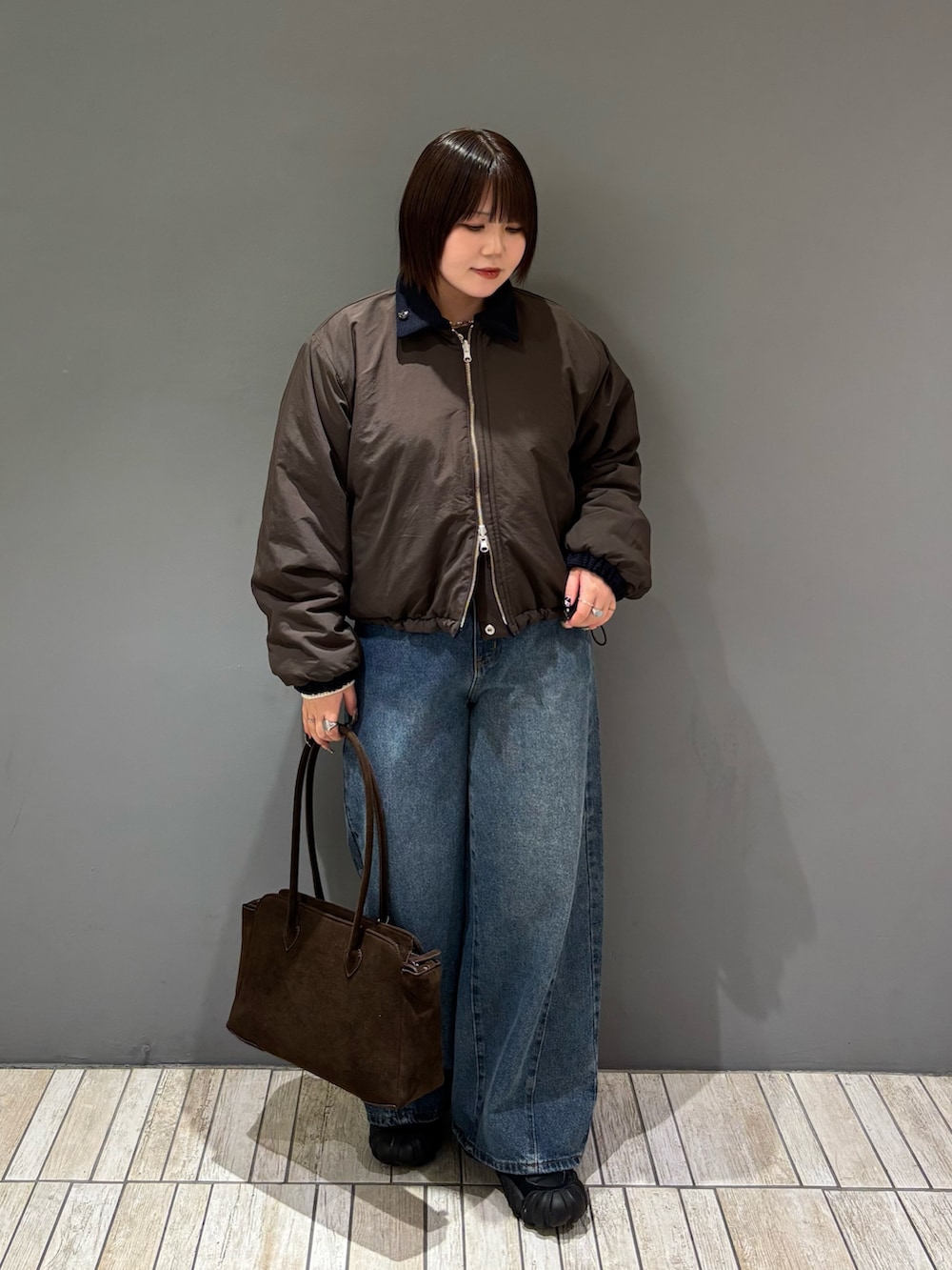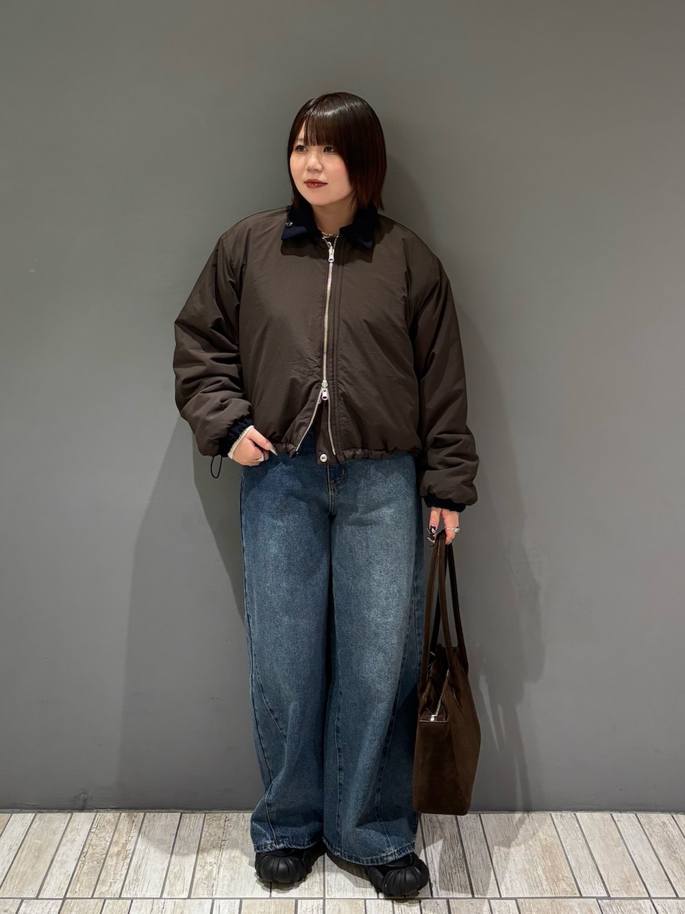 着てみた感じ、中綿しっかり入っているので骨格ストレートの私は着膨れするかなと思っていたのですが、アウター自体のサイズ感がオーバーサイズではない&裾のドローコードを絞って調節できるので思っていたより大丈夫でしたദ്ദി ῀ᢦ῀ )
