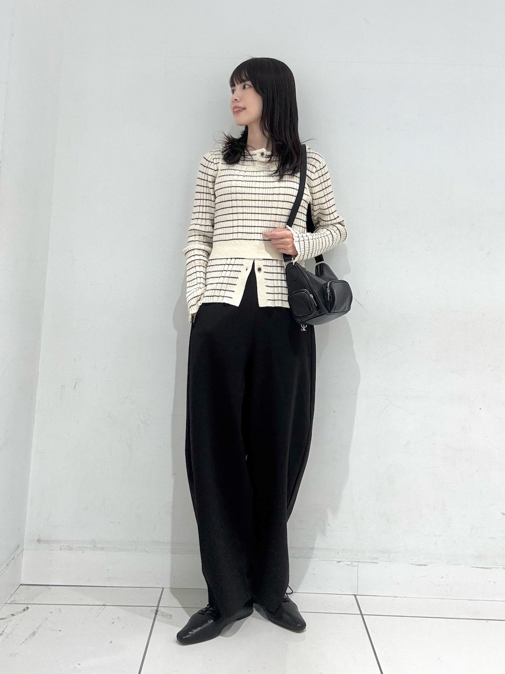 タイ付きニットカーデ、今回はパンツで着てみました!