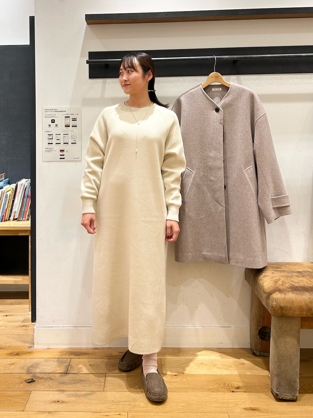 お店でも人気のスウェットライクニットワンピース。人気の秘訣は着てみて分かります🥺身体のラインを拾わず、ストレッチ性のある楽ちん素材のおかげでストレスフリーな着心地が魅力です。いろんな動作をしても、インナーのラインが出る心配もなしです。程よく控えられたボリュームと落ち感のおかげでスッキリ着られます。