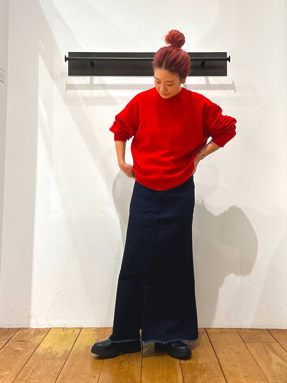 差し色の赤でholidayコーディネートです♩