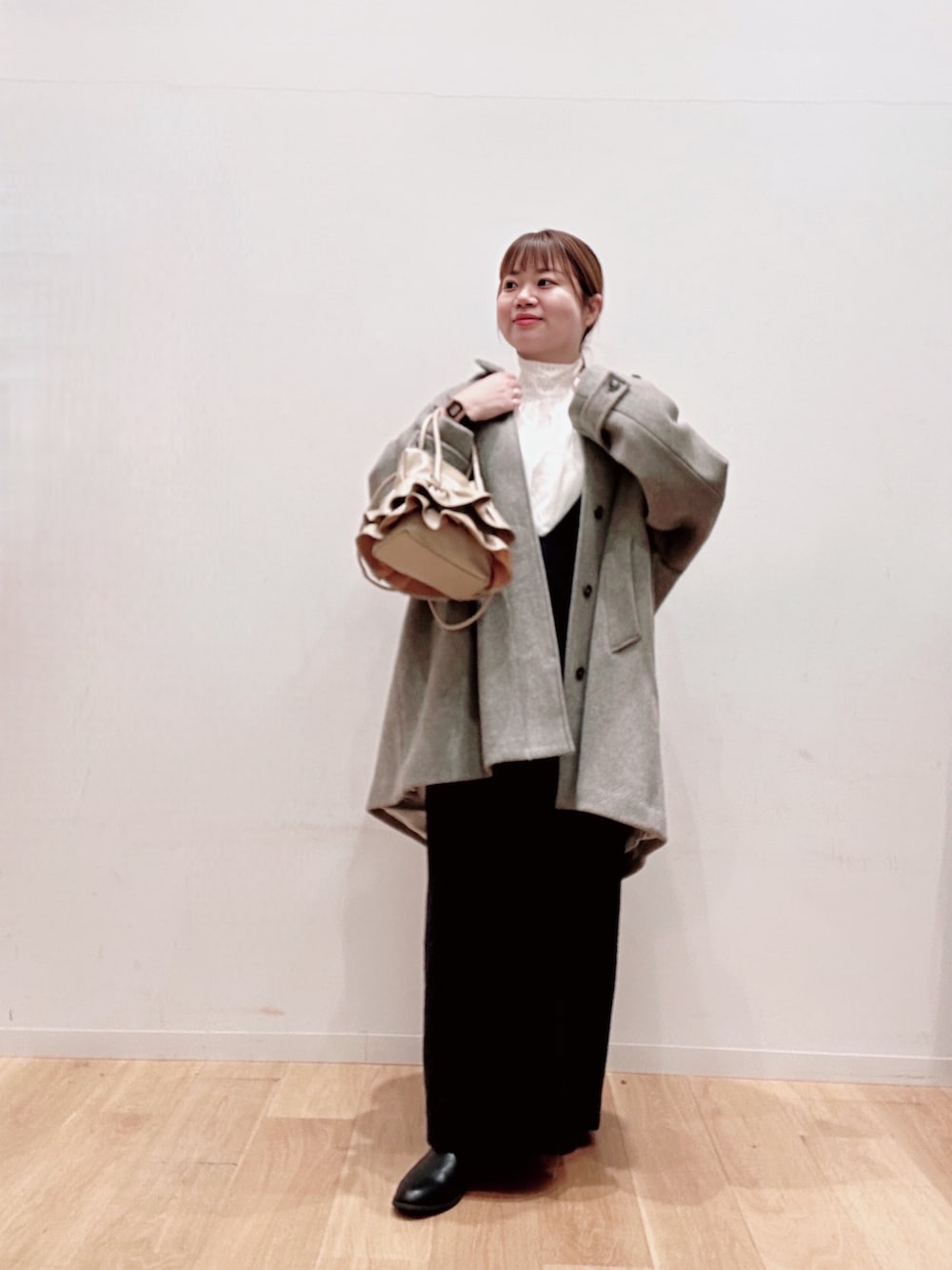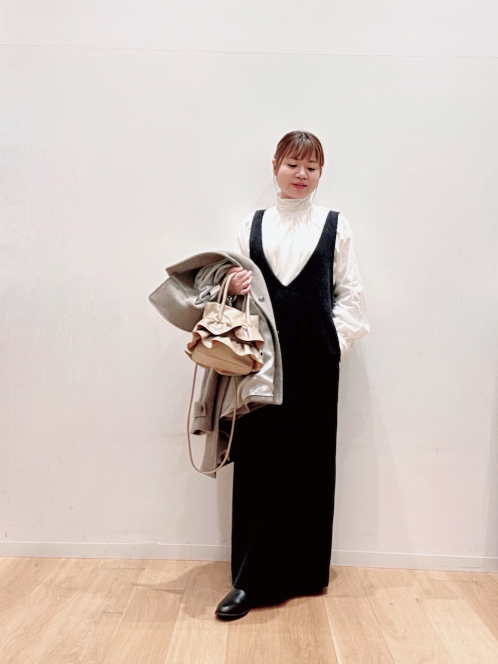 アウターはしっかり生地のウール素材でベーシックなシルエット🥹👗🪶