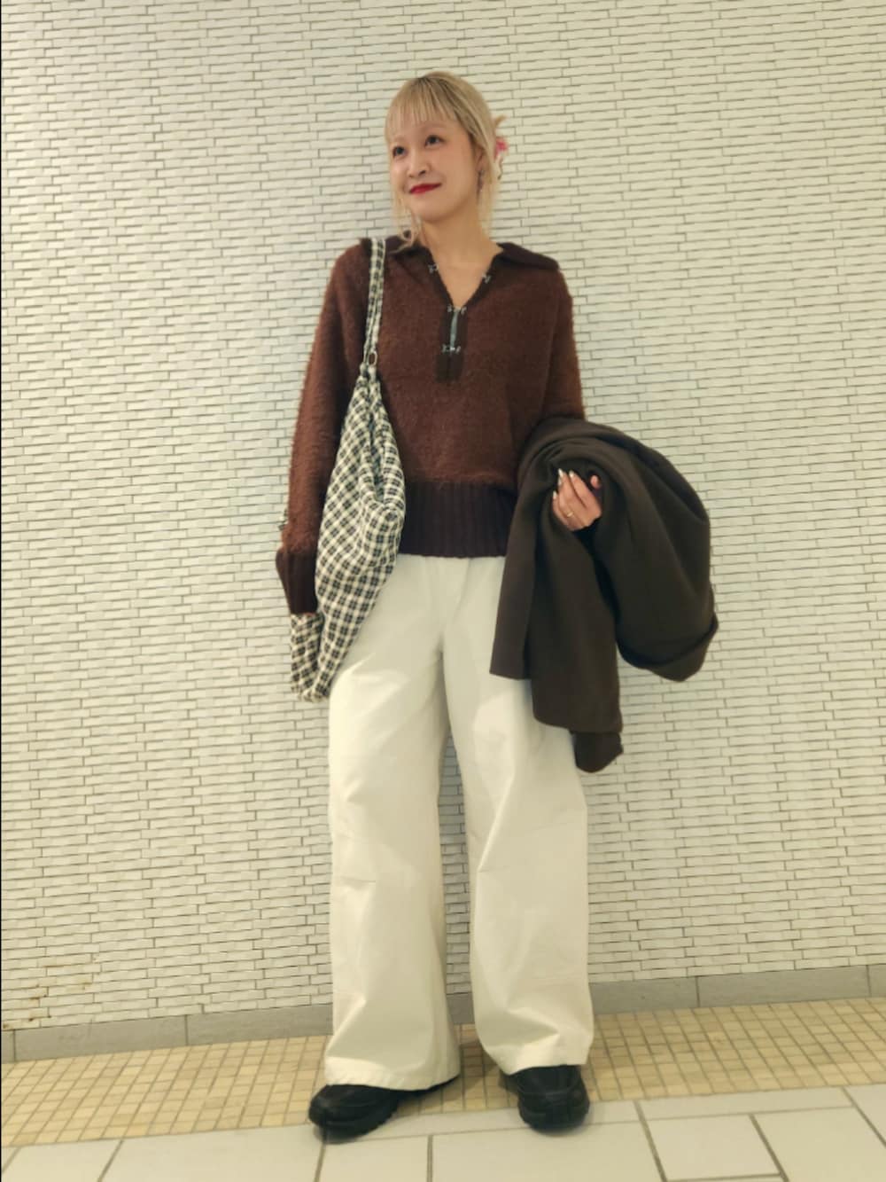 程よくゆったりなので、中に厚手のニットも着こんで頂けます🤗
