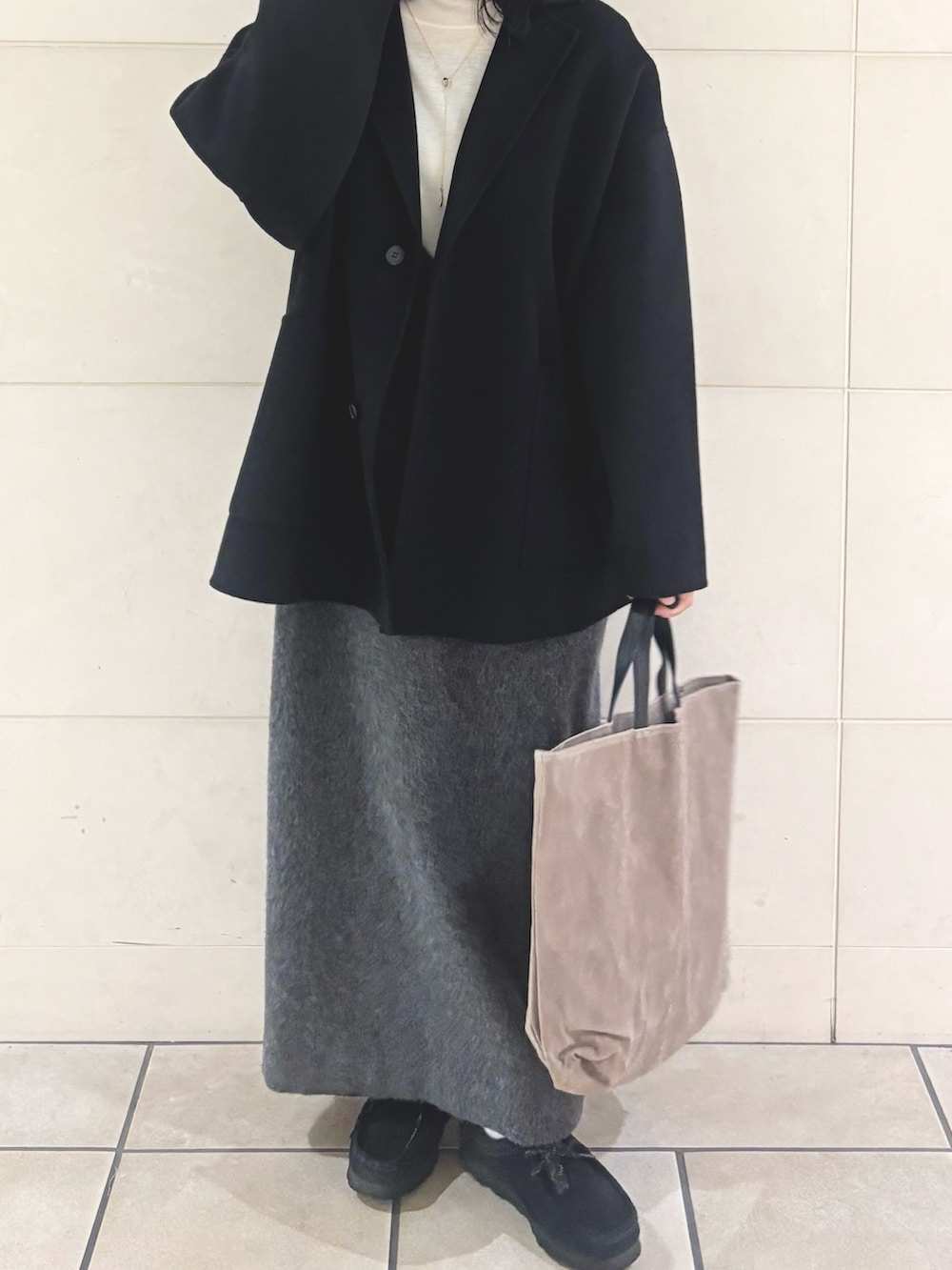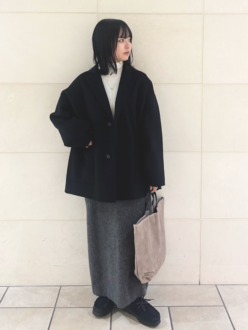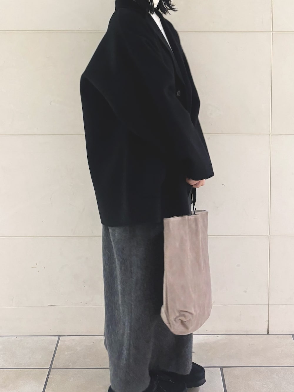かぐれのコートは、適度にハリ感のあるウール生地を使用しており、高品質な生地のため非常に肌触りが良く軽くてあたたかいのが特徴になっています◎カットソーからニットまで着用できるサイズ感なのでインナーで温度調節が可能です!裏地の無い一重仕立てを採用し気軽に着られて、パンツ・スカートはもちろんワンピースにも好相性です✨