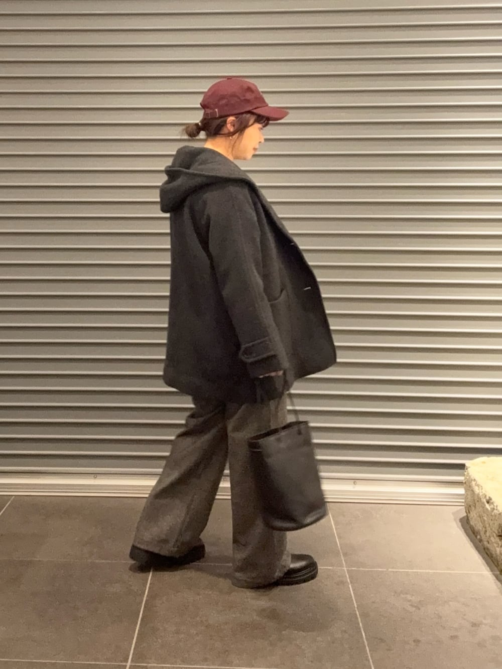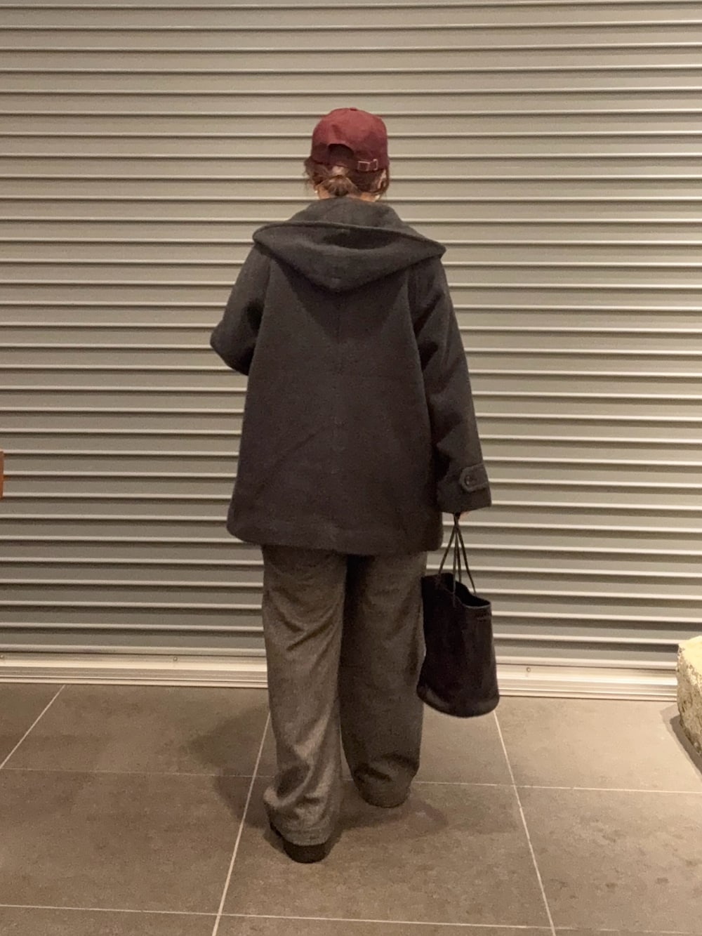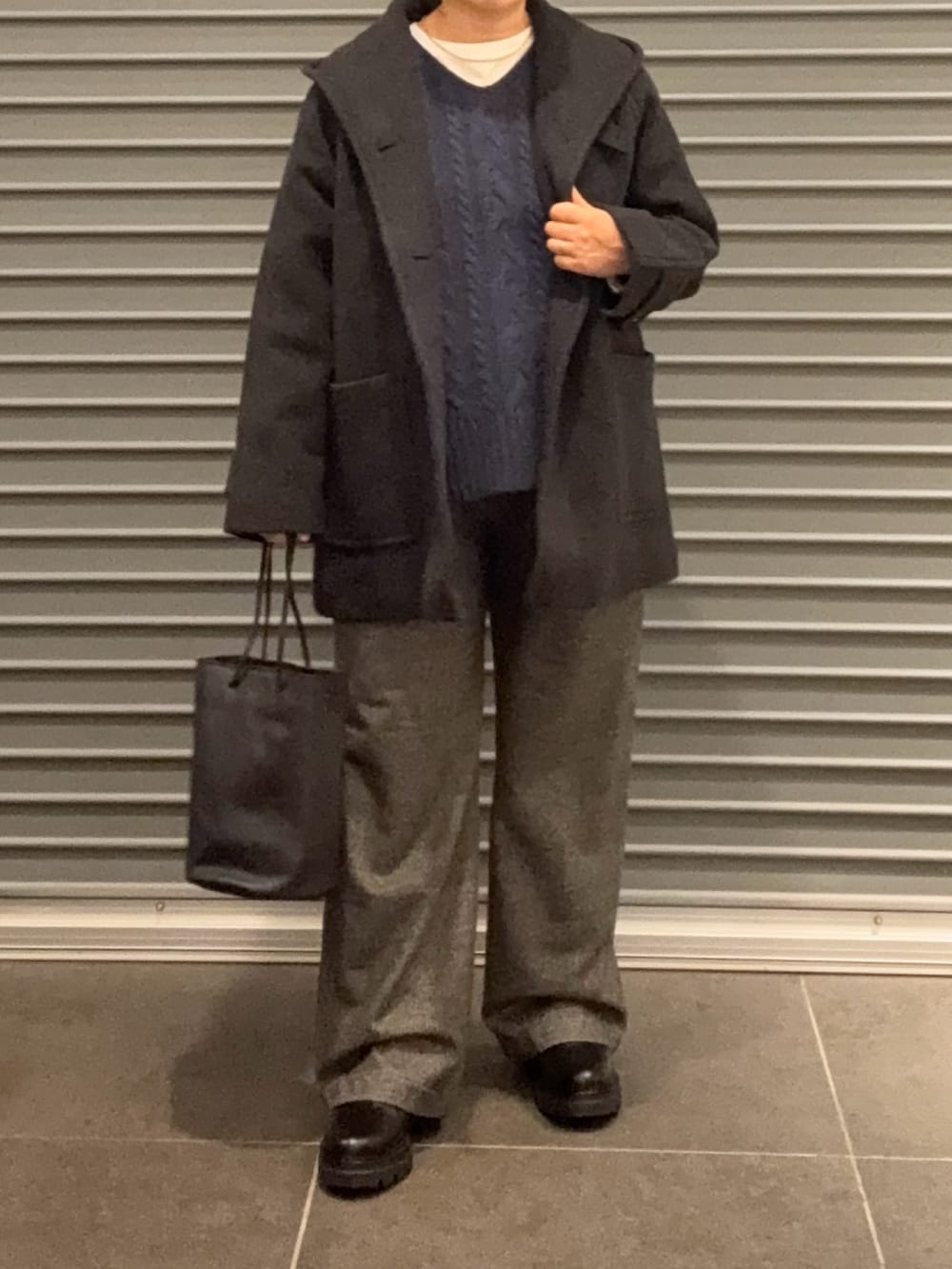 カジュアルにもきれいめにも着回せるミドル丈のウールコートです。襟まわりもフードが着いてるので、とても暖かいです。