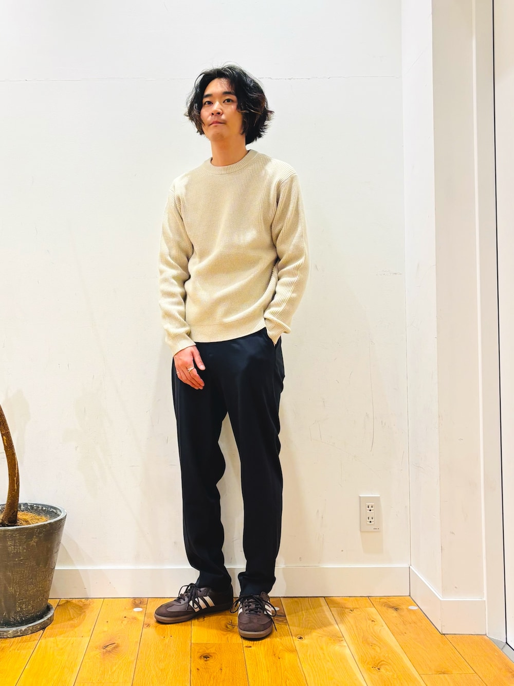 サイズ感は少しゆったりめなのでスッキリ着たい方はワンサイズ下げるのをオススメします。