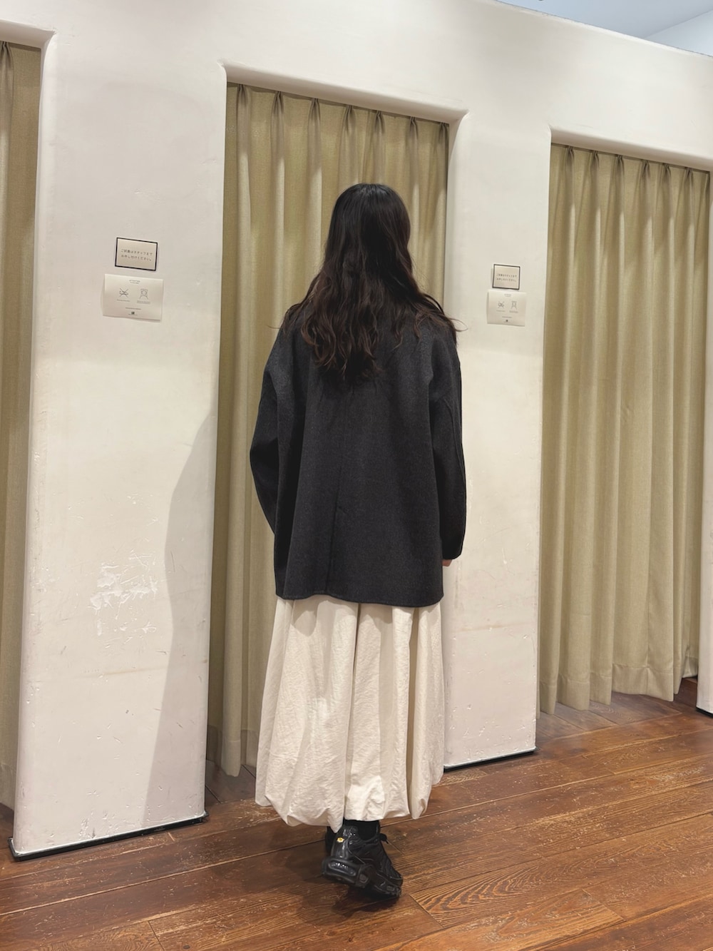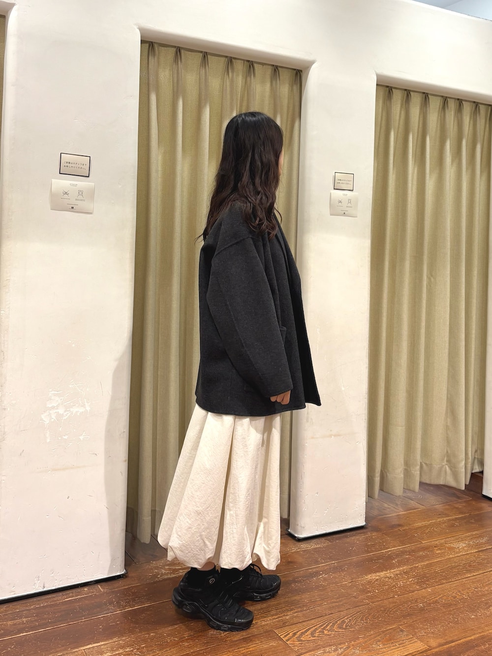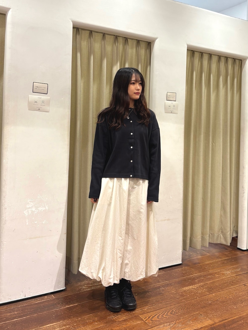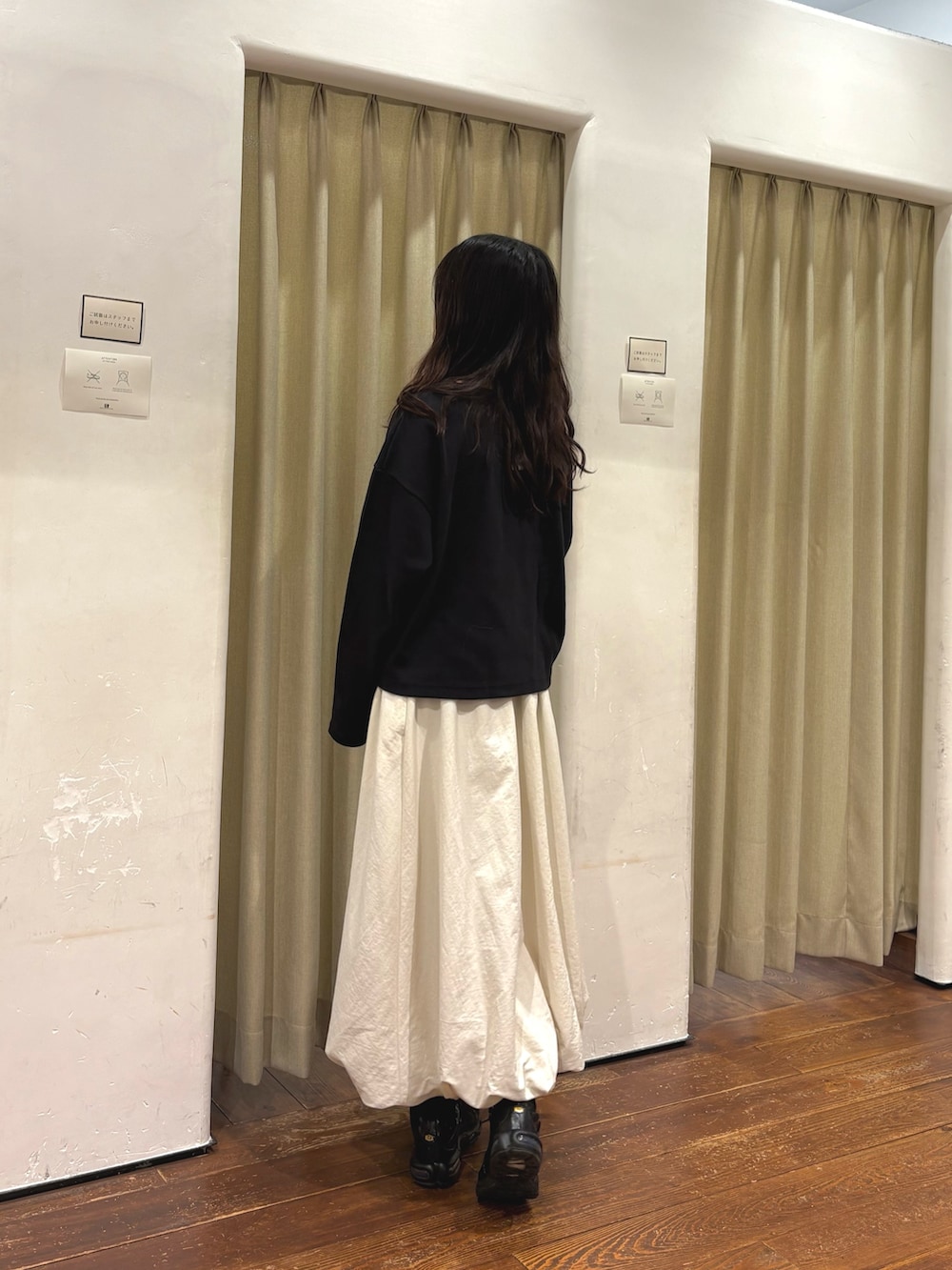 スカートはマットな素材でバルーンシルエットながら落ち感もあるので、カジュアルすぎない為、さまざまなコーデに合わせていただけます。