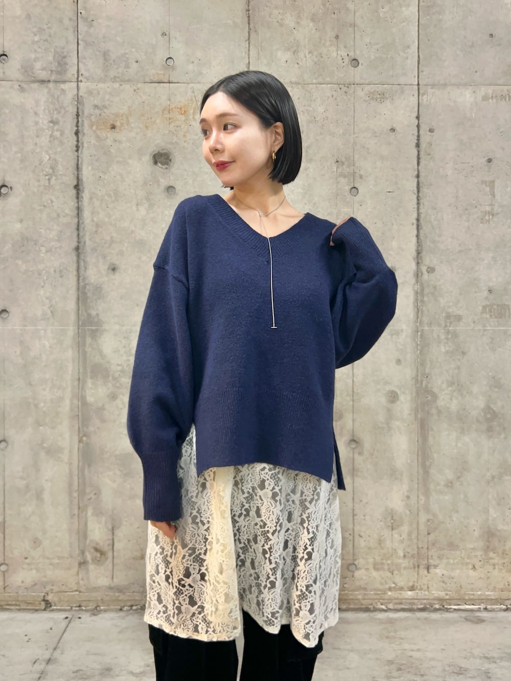 SENSE OF PLACE『洗濯可』サイドスリットVネックニット- カラー:
