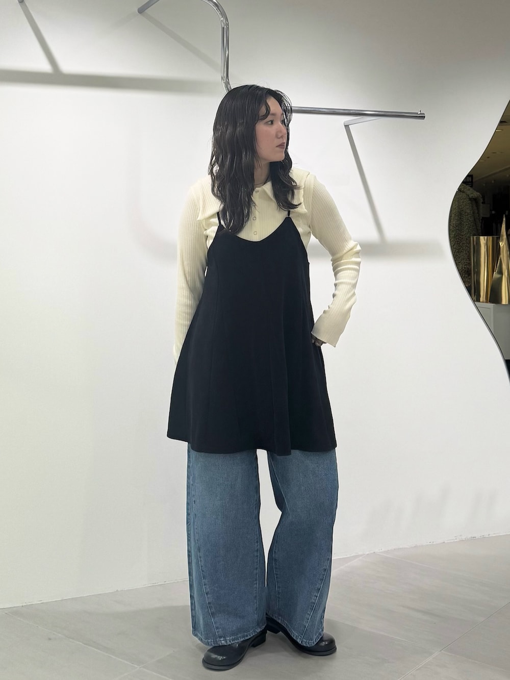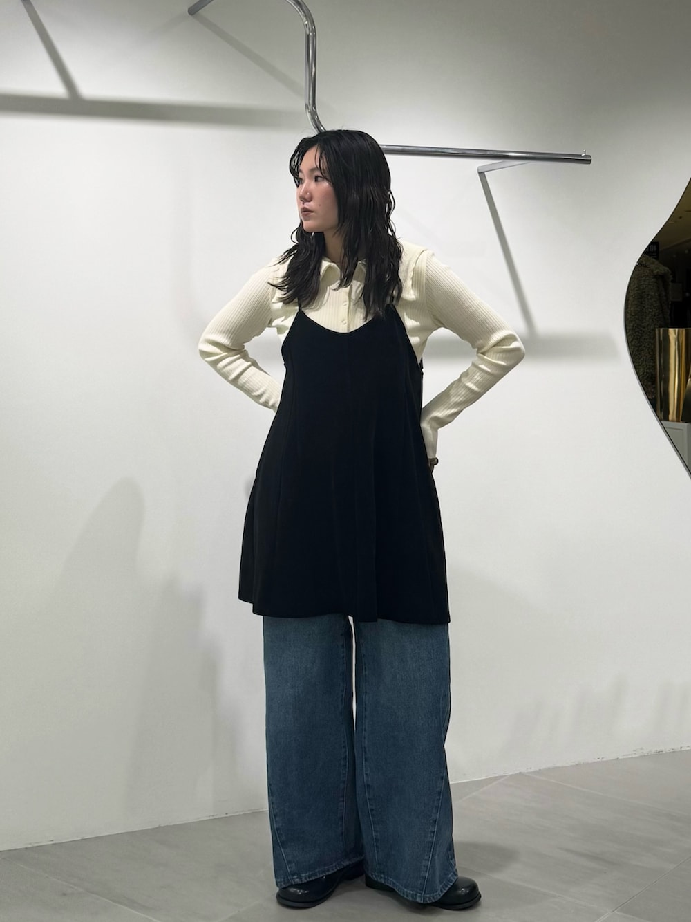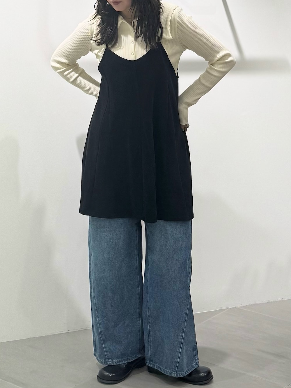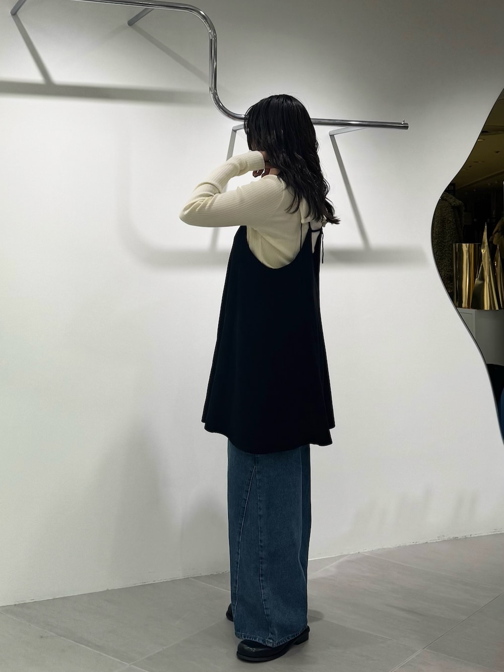 シンプルなリブながらも、ブラウスのようなディテールで女性らしさも