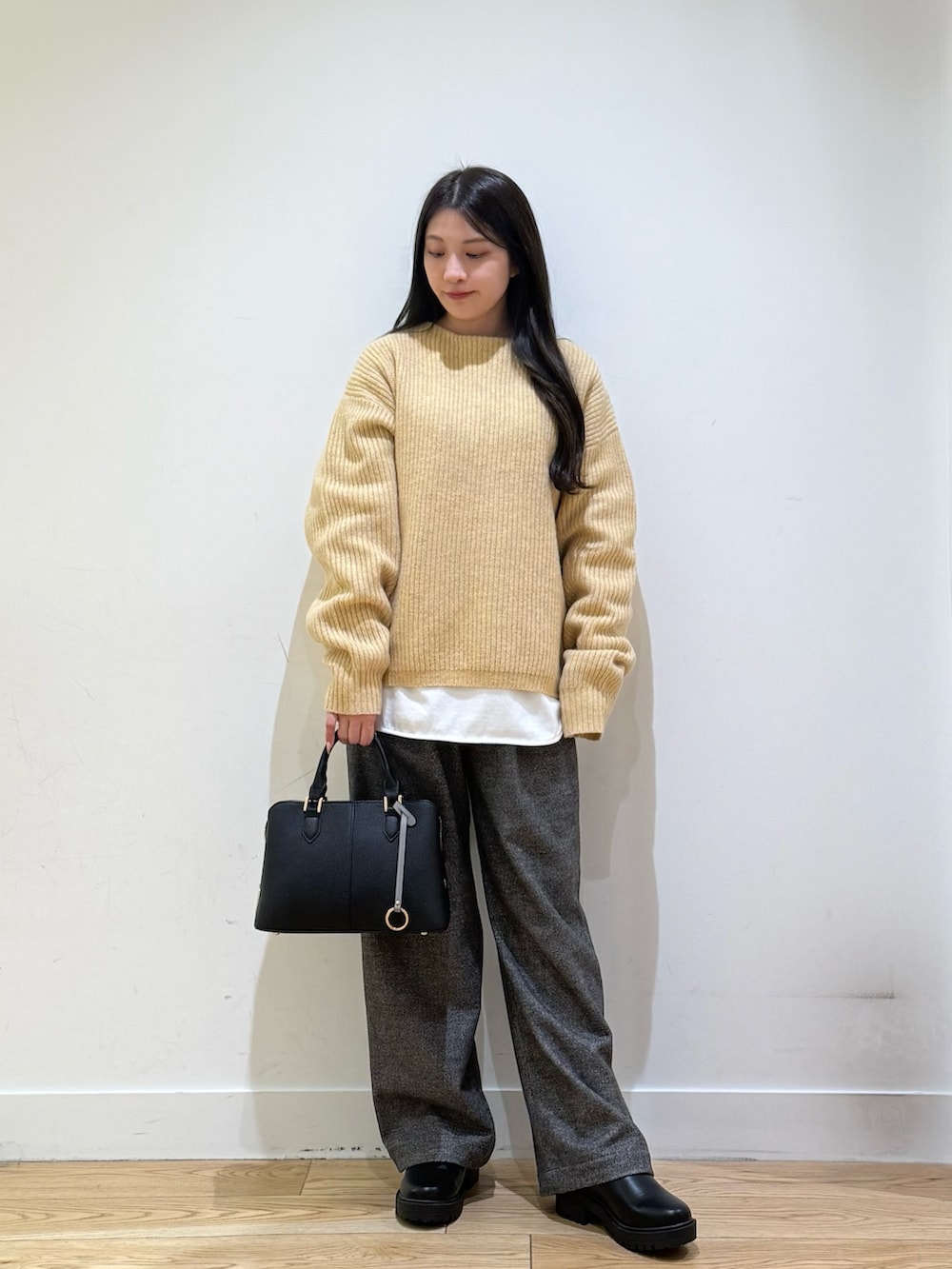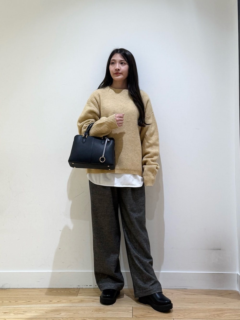ブラッシュドパンツは、ウエストがゴムで楽に履けて暖かいので寒い日にぴったりです!