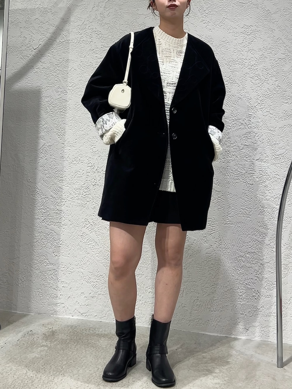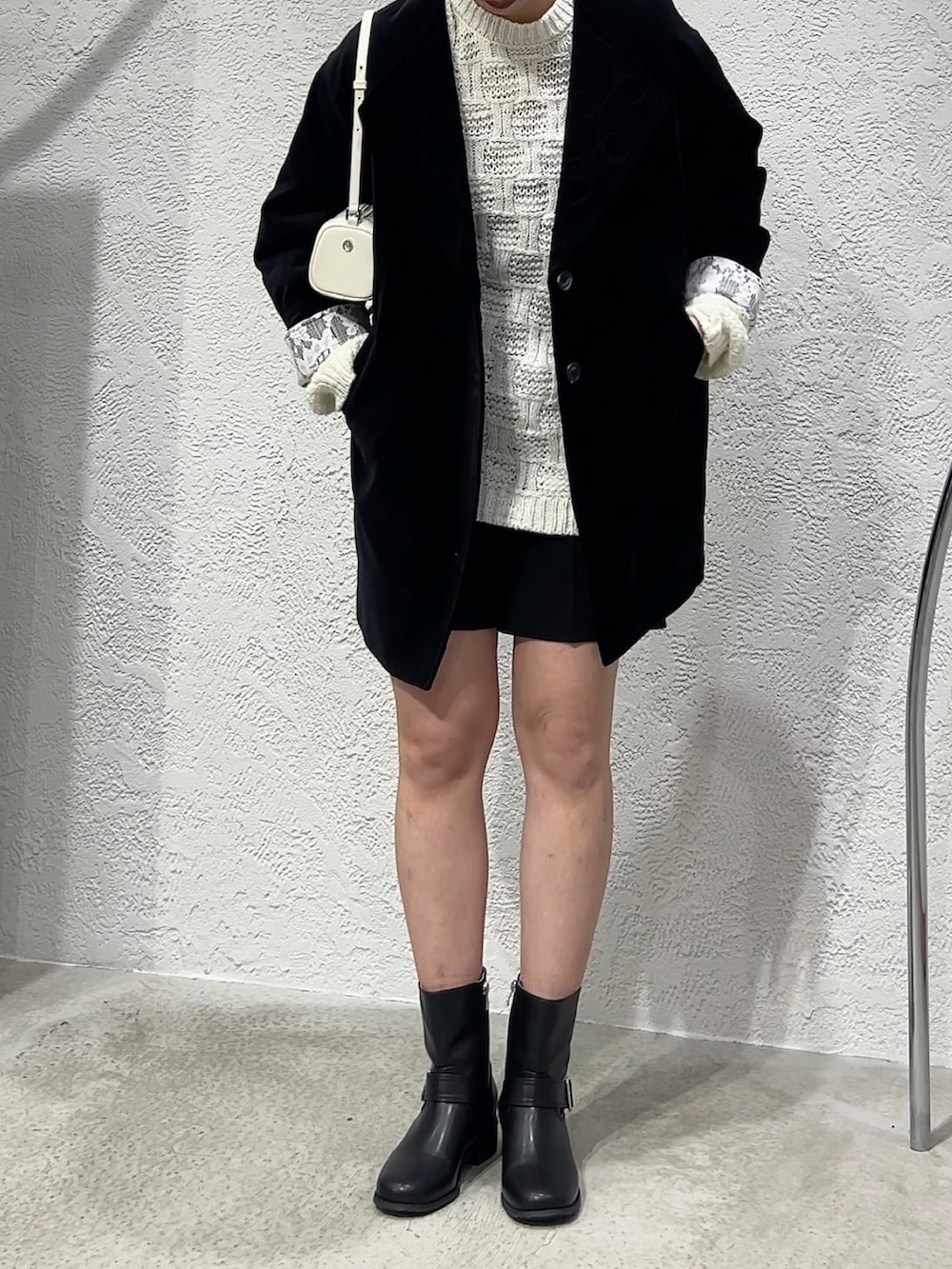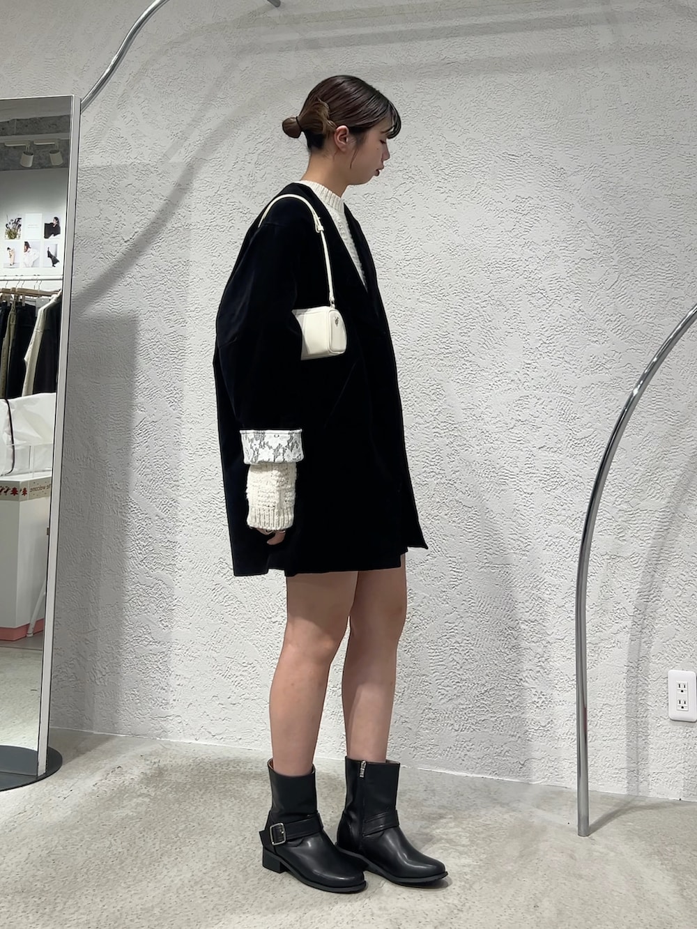 モノトーンでも素材感を工夫すると地味にならずおしゃれ見えしてくれます!