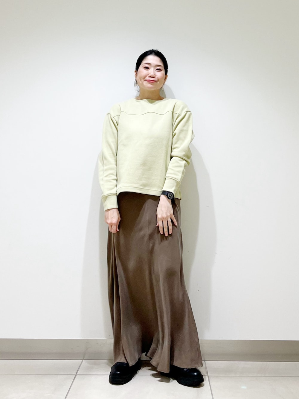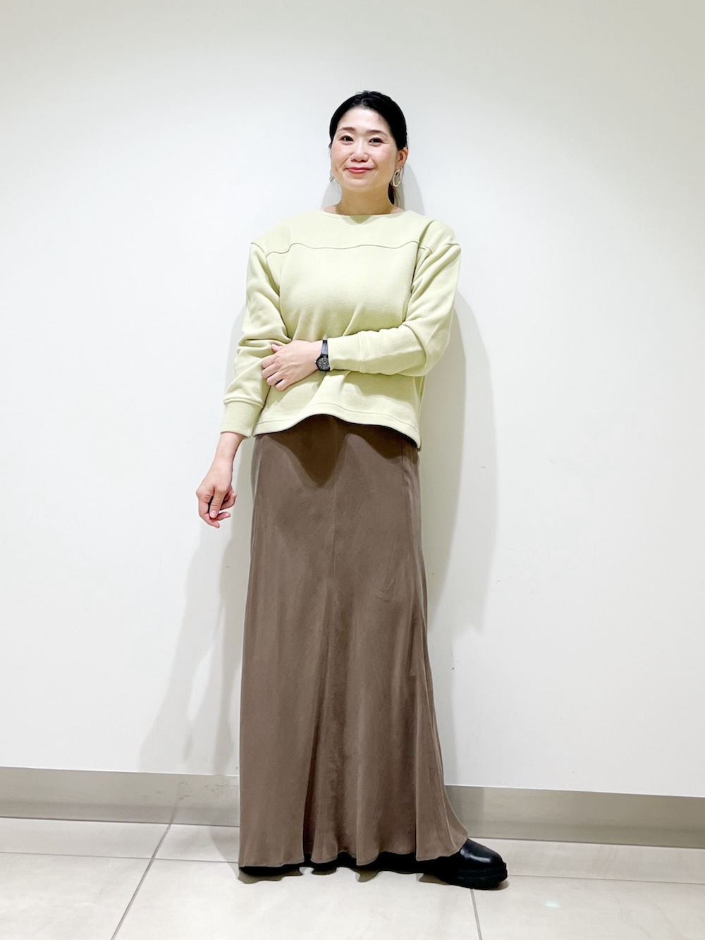ピスタチオカラーのトップスもとっても可愛いです!しかもあたたかいですよ◎