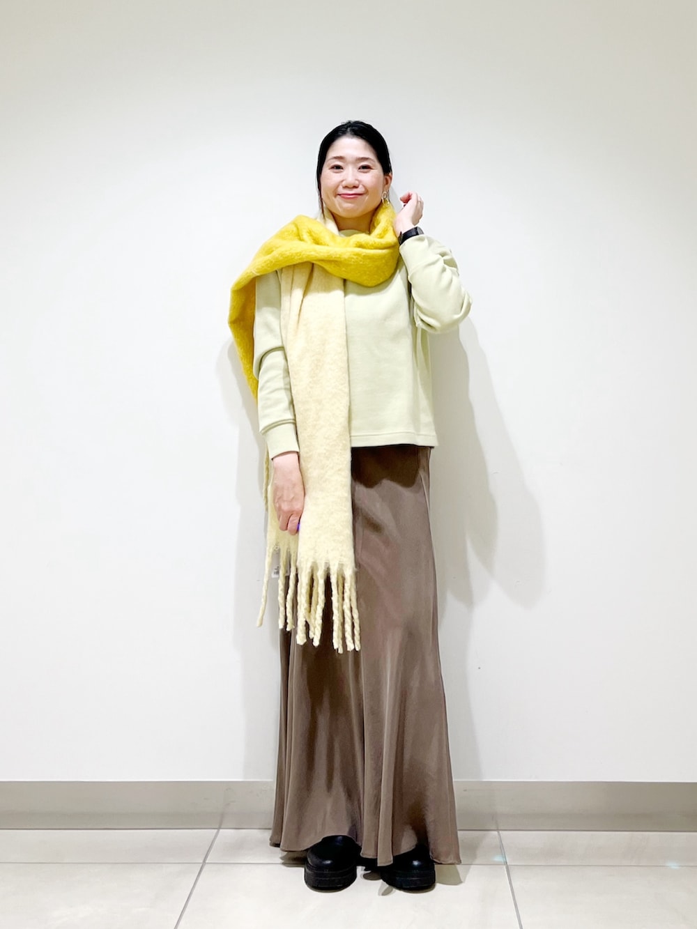 存在感あるボリュームマフラーは、スタイリングのアクセントにもなりしかも温かくてオススメです◎