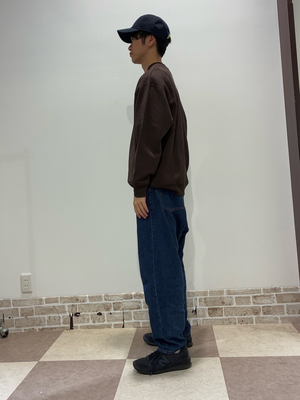 こちらのスウェットはポリエステル素材でシルエットもカジュアル、きれいめと両方合わせられます!