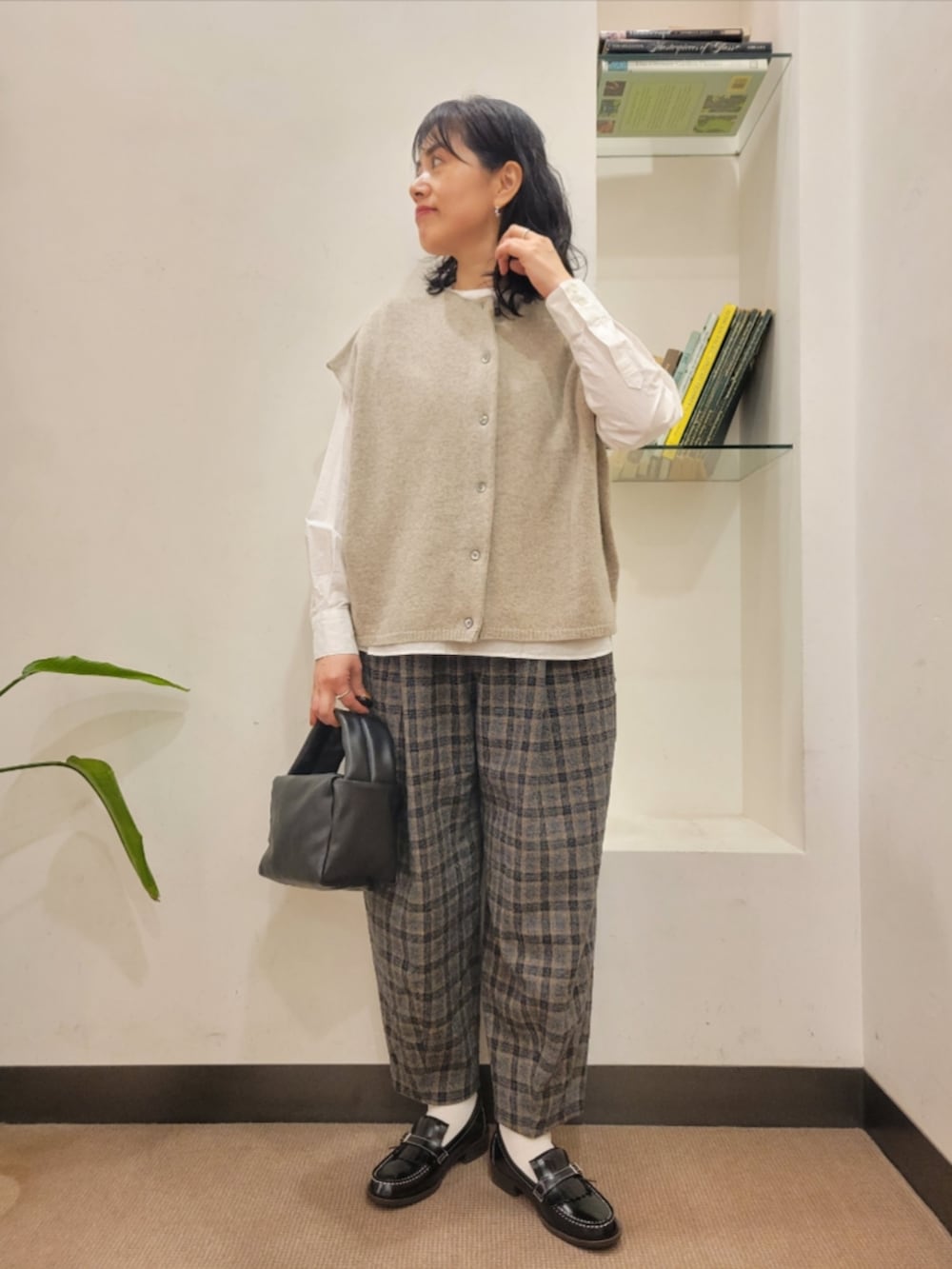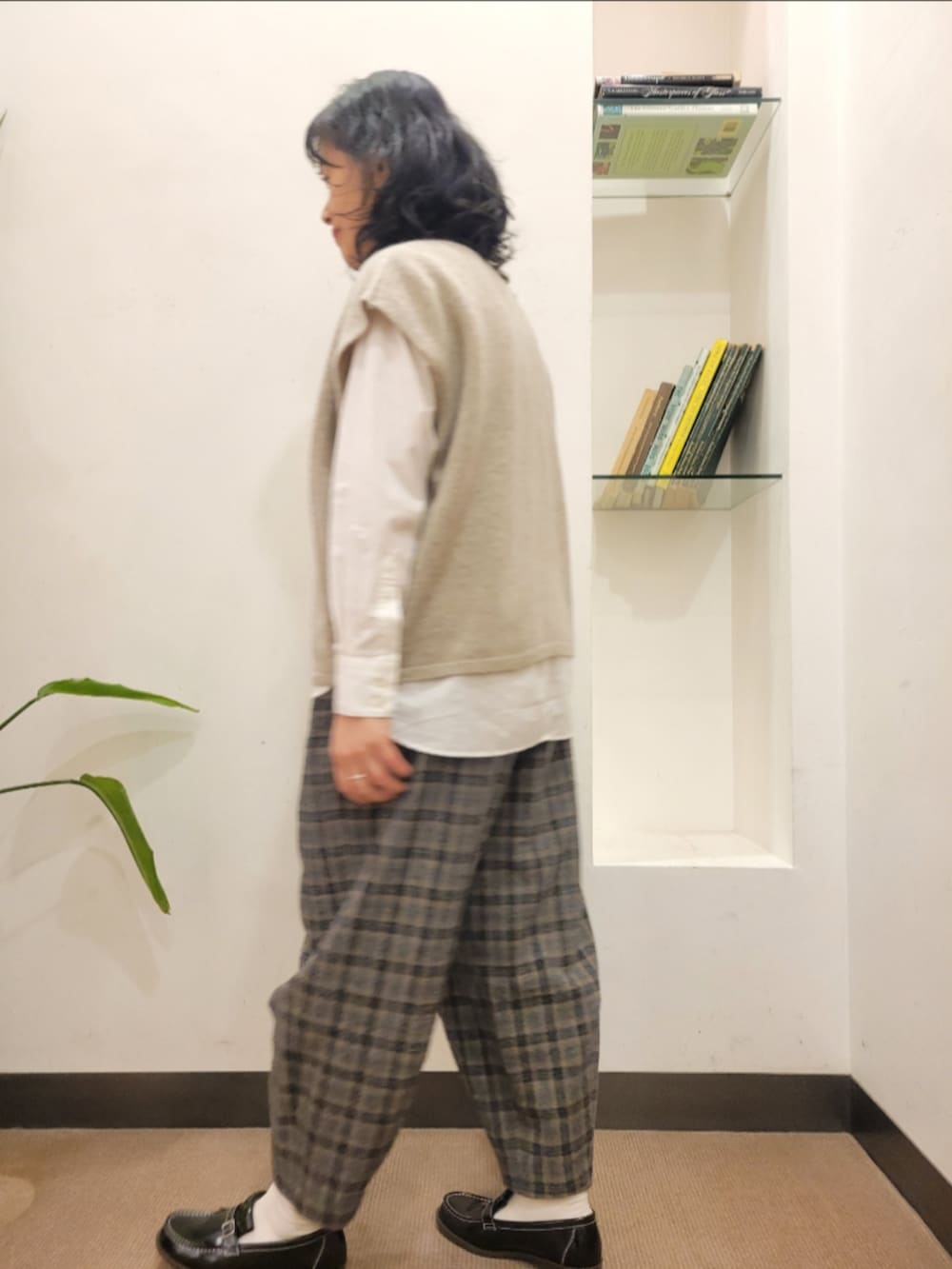 かぐれウールコットンチェックパンツ- カラー: