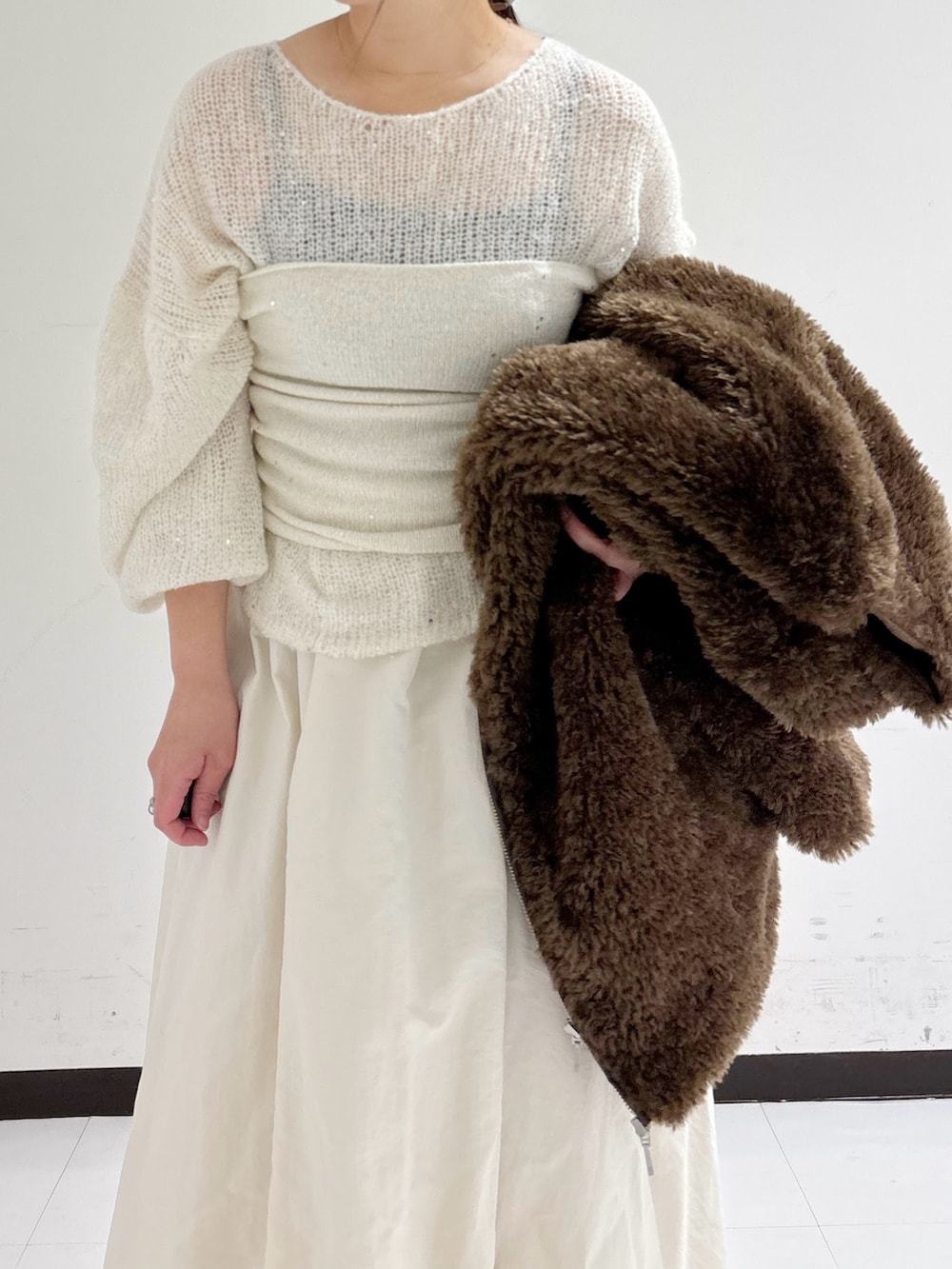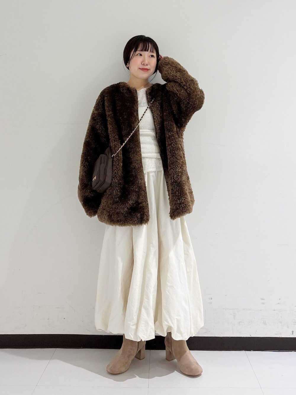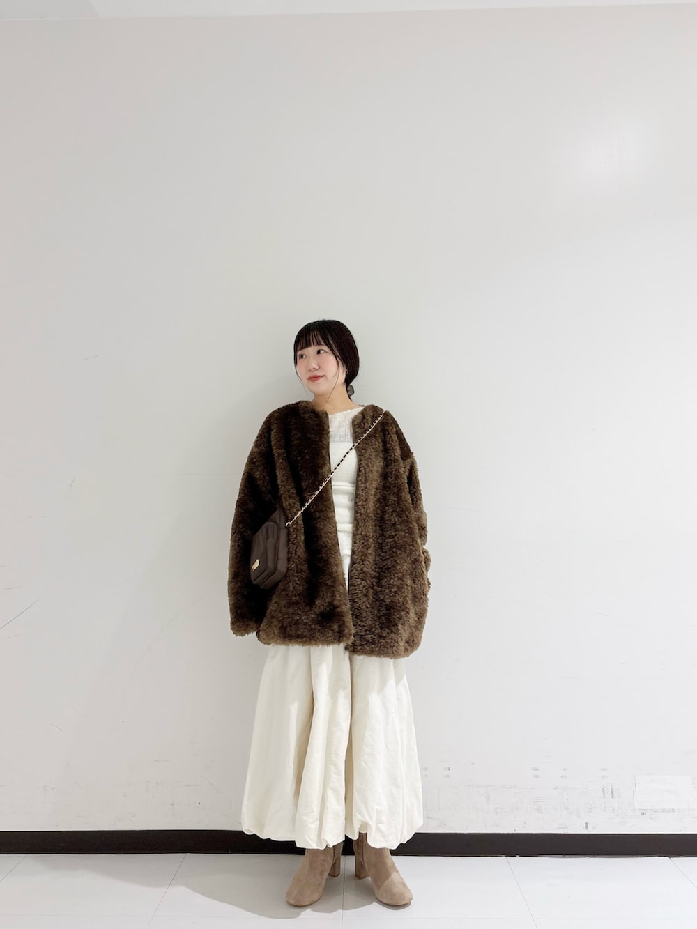 ROSSO『WEB/一部店舗限定』ノーカラーファーボアZIPブルゾン- 着用カラー: