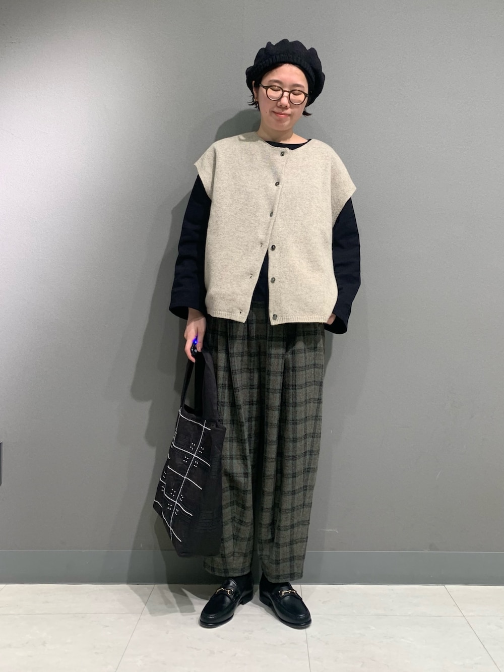 かぐれウールコットンチェックパンツ- 着用カラー: