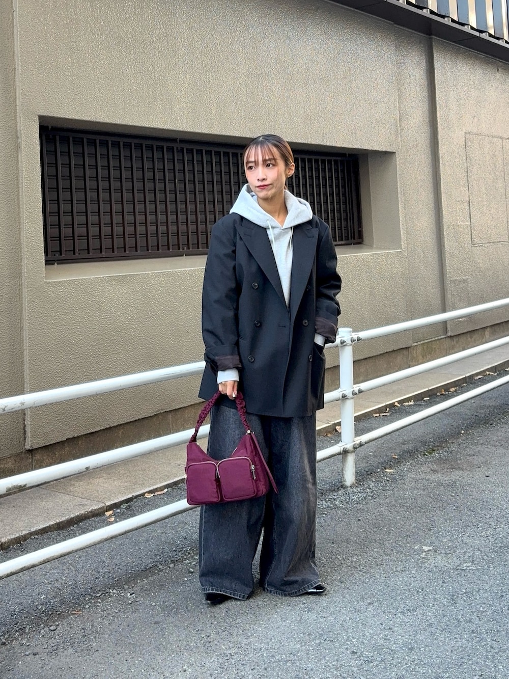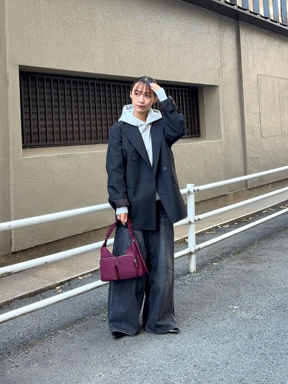 そこにnew basicのテーラードジャケットを重ねてラフすぎないスタイルに!